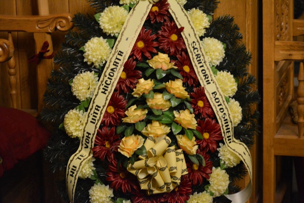 Luni seara, în biserica din Vorona, o mână de oameni se adună într-un împreună creștin. Câteva femei din sat, preotul din parohie, foști colegi de presă, câteva flori pe sicriu, o coroană din partea scriitorilor botoșăneni, lumânări pâlpâind palid în liniștea atât de neobișnuită veseliei care îl caracteriza pe Florentin.