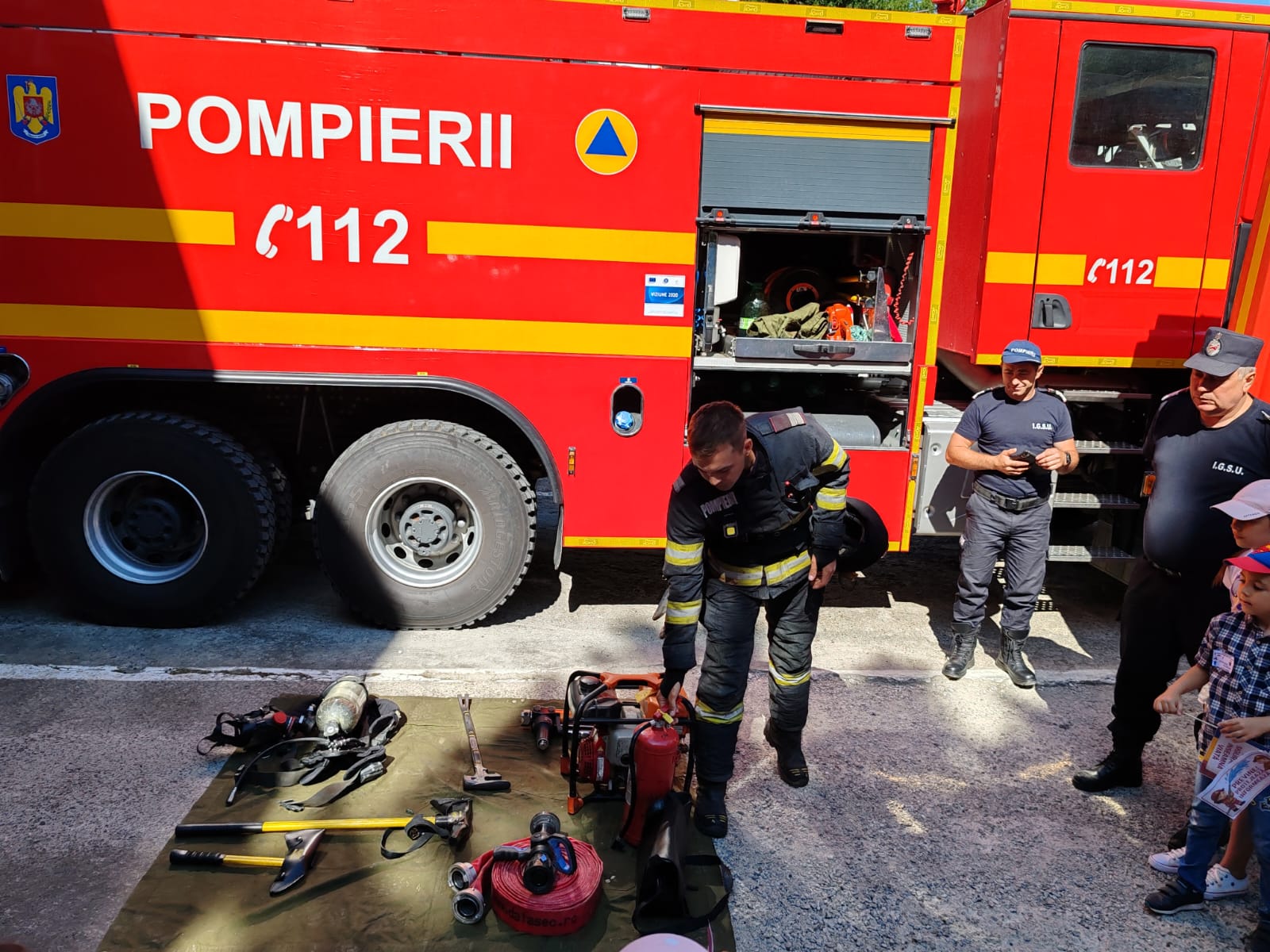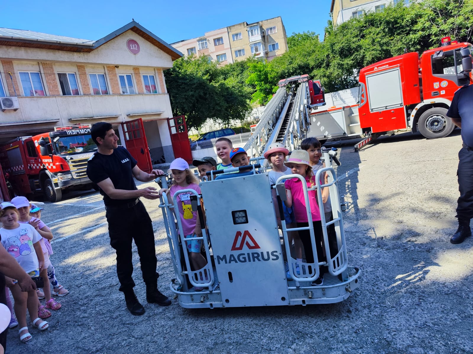 Acolo, au avut ocazia să vadă îndeaproape autospecialele folosite în misiuni și au aflat cum acționează pompierii în situații de urgență. Totodată, au participat la concursuri interactive cu rol educativ în domeniul situațiilor de urgență și au răspuns la întrebări despre prevenirea incendiilor.