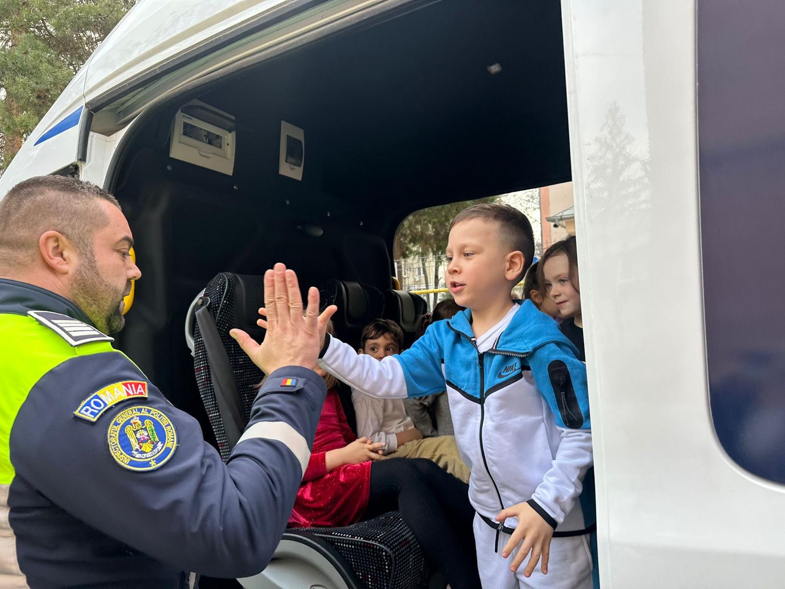 Polițiștii botoșăneni au desfășurat o activitate interactivă alături de copiii de la Grădinița cu Program Prelungit nr. 14 Botoșani, pentru a le oferi lecții despre siguranța rutieră, comportamentul adecvat acasă și măsurile de protecție pe internet.