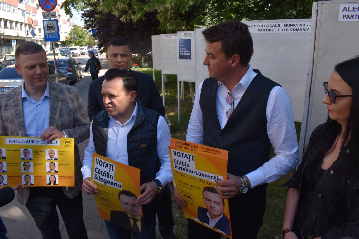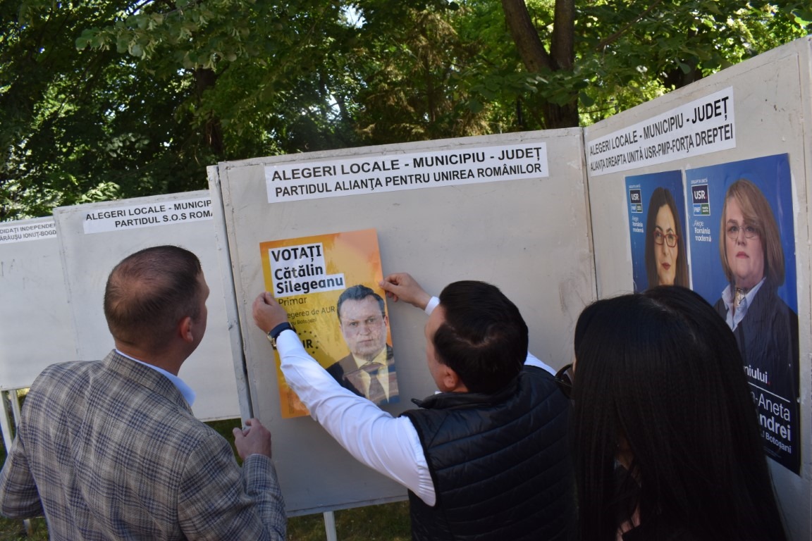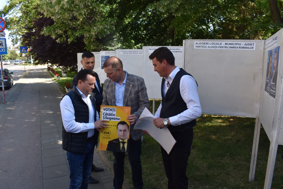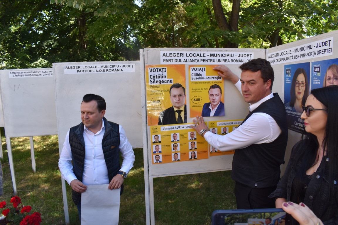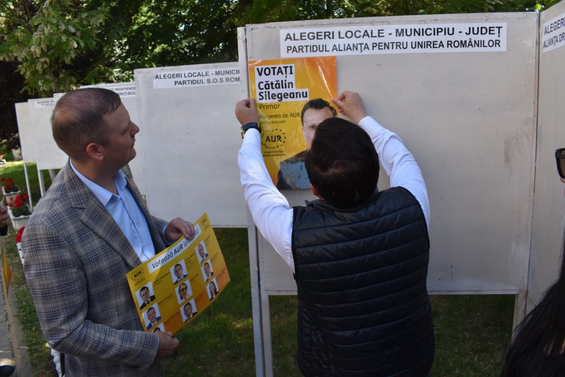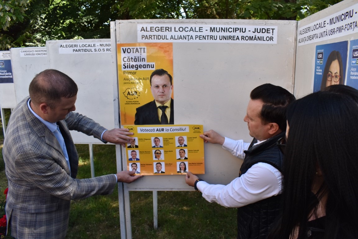 De altfel, reprezentanții AUR au lipit afișe și noaptea trecută în celelalte locații unde este permis afișajul electoral.