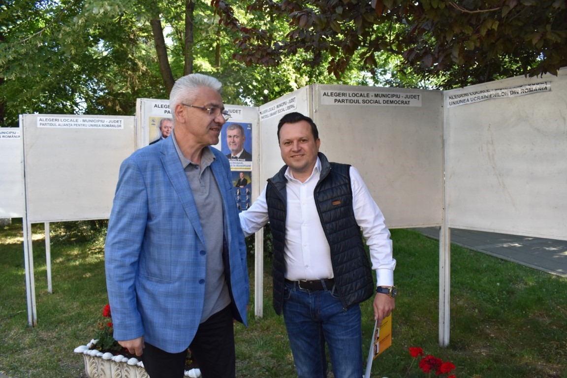 Cătălin Silegeanu, candidatul pentru Primăria Botoșani și Eusebiu Cilibiu care aspiră la fotoliul de președinte al Consiliului Județean.