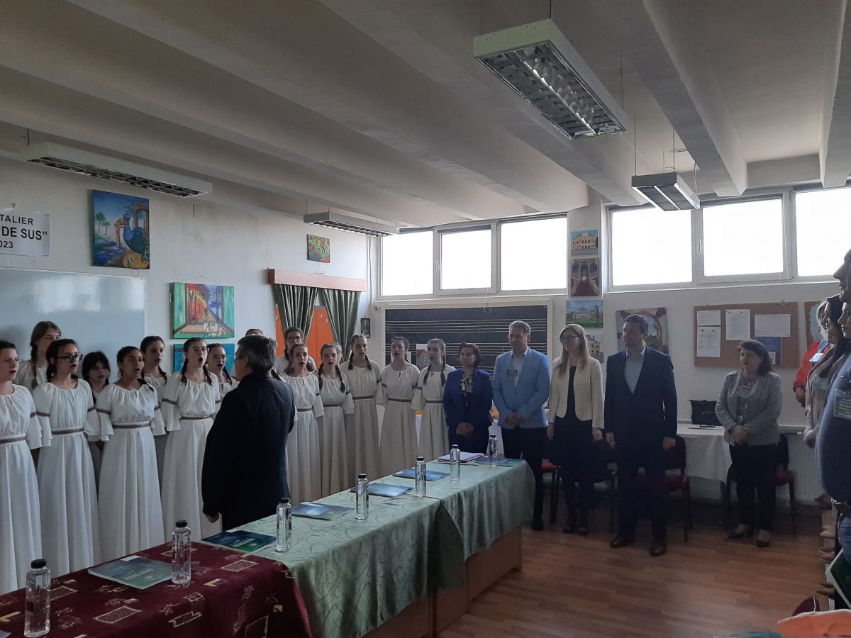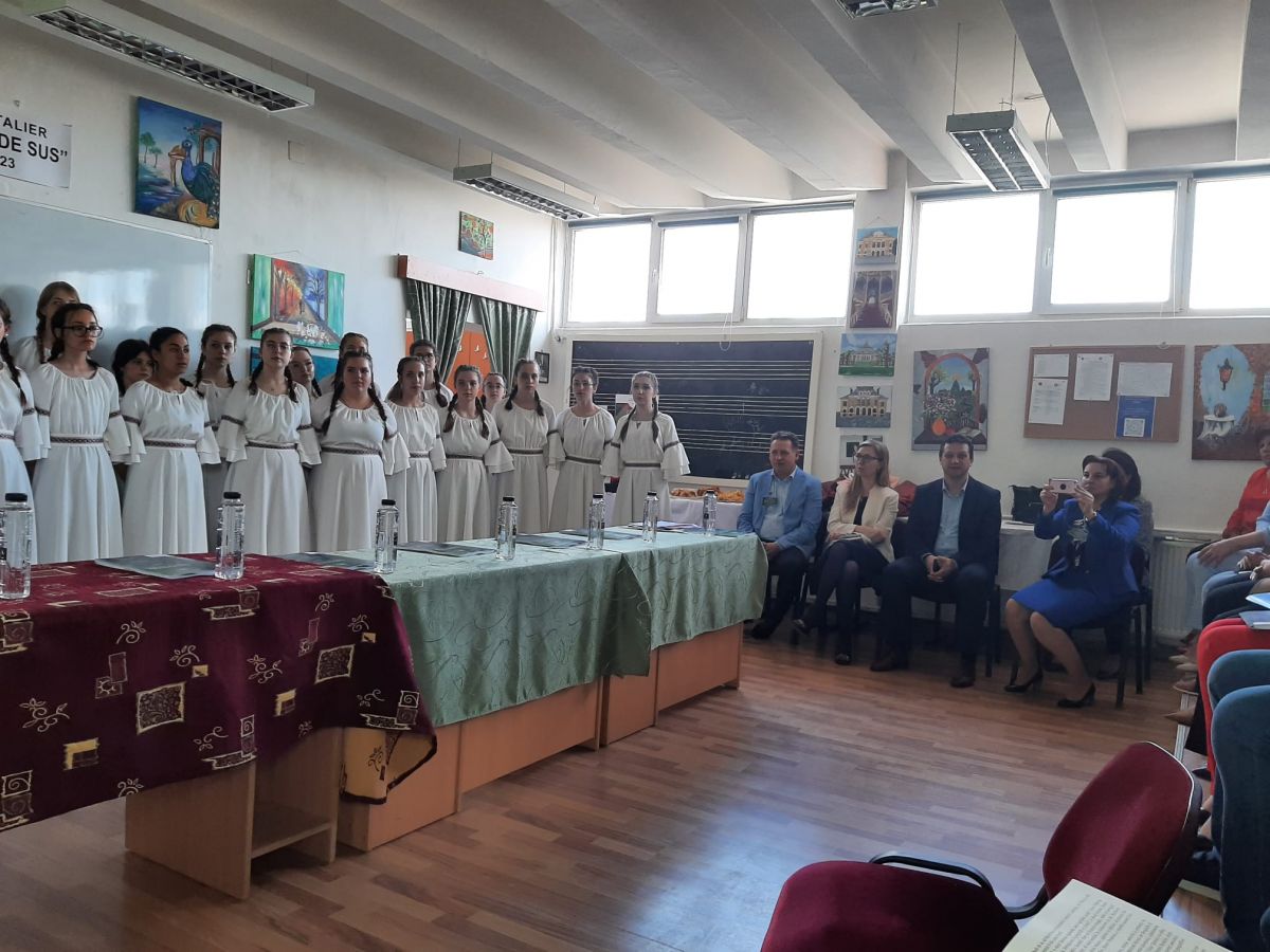 În deschiderea simpozionului, participanții s-au bucurat de un moment artistic susținut de corul Liceului Pedagogic, condus de profesorul Laurențiu Palade.
