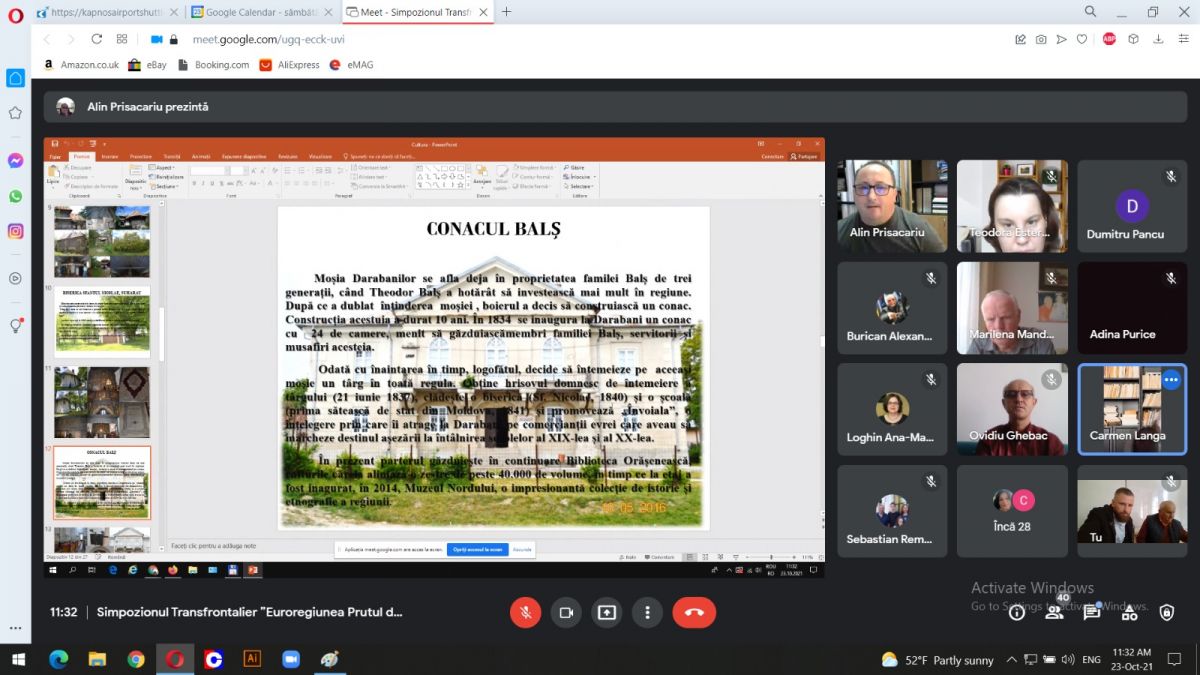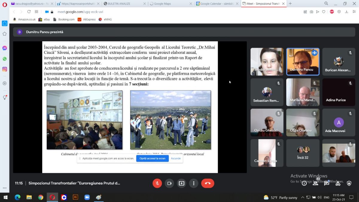 Pe 23 octombrie 2021 s-a desfășurat Simpozionul Transfrontalier ”Euroregiunea Prutul de Sus”- ediția a XII-a, sub egida Societății de Geografie din România, filiala Botoșani, în parteneriat cu Inspectoratul Școlar Județean Botoșani, Liceul Pedagogic ”Nicolae Iorga” Botoșani și parteneri de peste Prut, din Republica Moldova de la Liceului Teoretic ”Vasile Coroban” – Glodeni, Gimnaziului Criva – rn. Briceni, Gimnaziului Petrunea – rn.Glodeni.