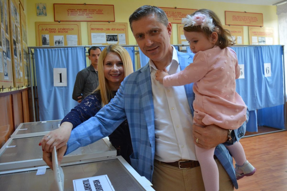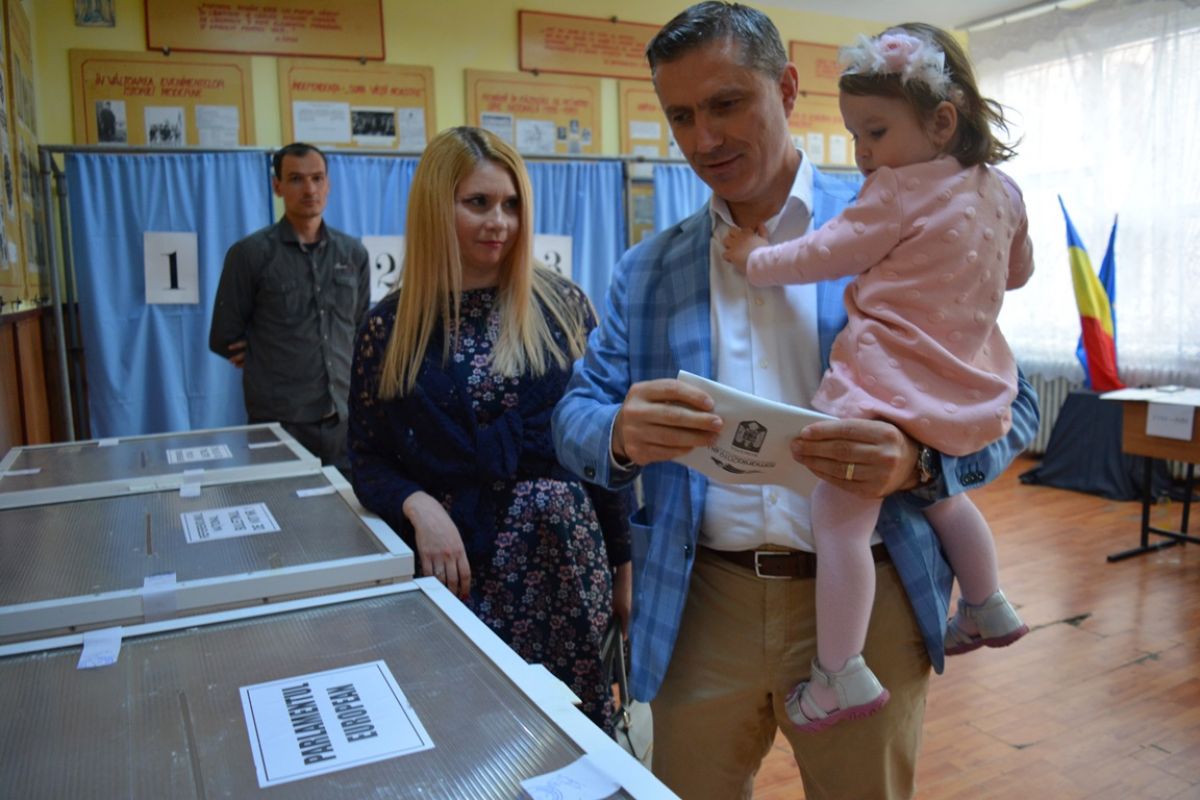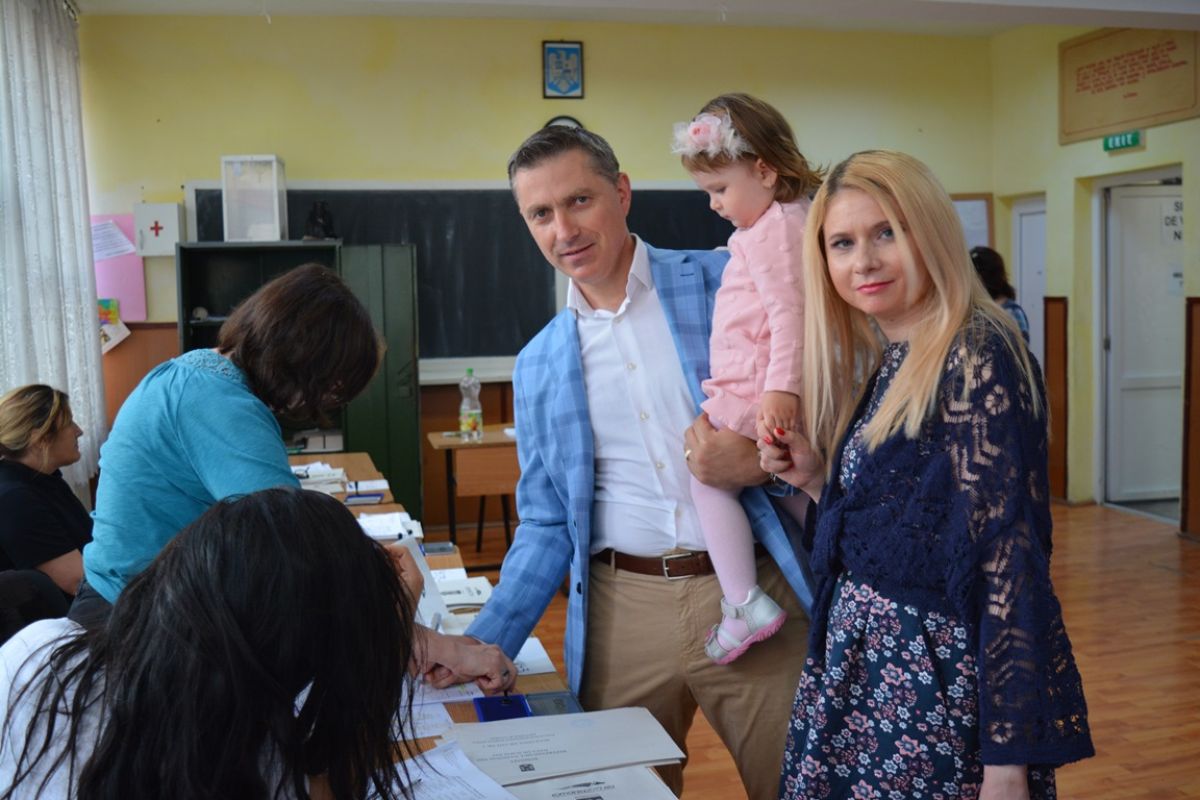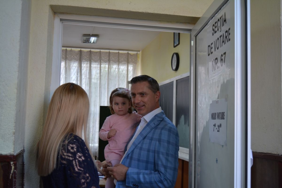 Costel Lupașcu a votat la secția 67 amenajată la Colegiul Economic, acolo unde a fost însoțit de soție și de fetița lor.