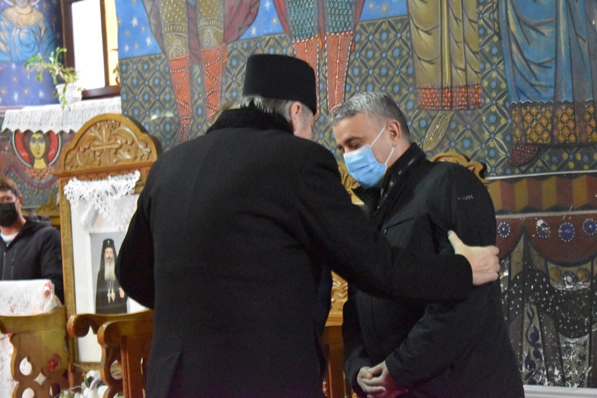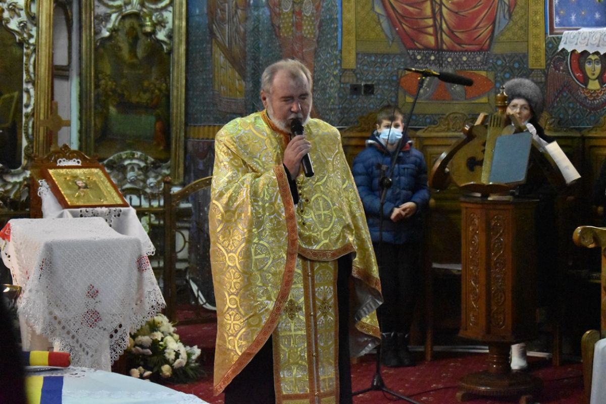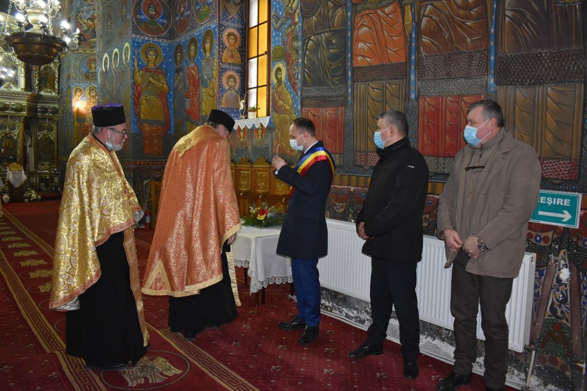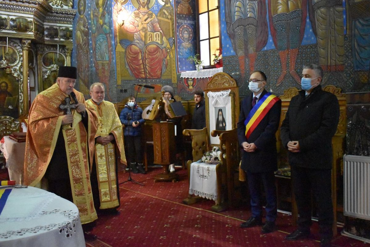 A început prin a mulțumi primarului Cosmin Andrei și viceprimarului Liviu Toma ”nu doar pentru faptul că sunt aici de față, ci pentru faptul că au avut grijă de a continua această tradiție care este de 30 de ani, se face Tedeum de mulțumire”, pentru că au ajutat la iluminarea specială a bisericii în noaptea Zilei Culturii Naționale și ”pentru grija ce o va purta de acum înainte”.