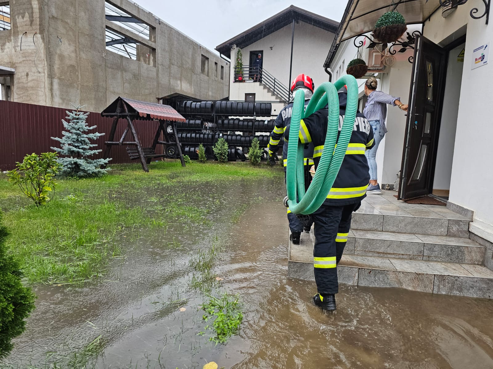 Mai mult decât atât, pe strada Împărat Traian, subsolul unei case și curtea erau inundate. S-a intervenit cu motopompa pentru evacuarea apei.