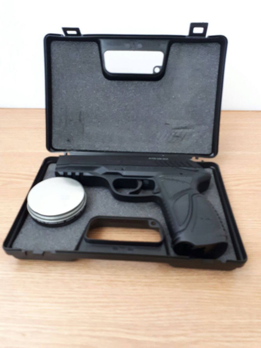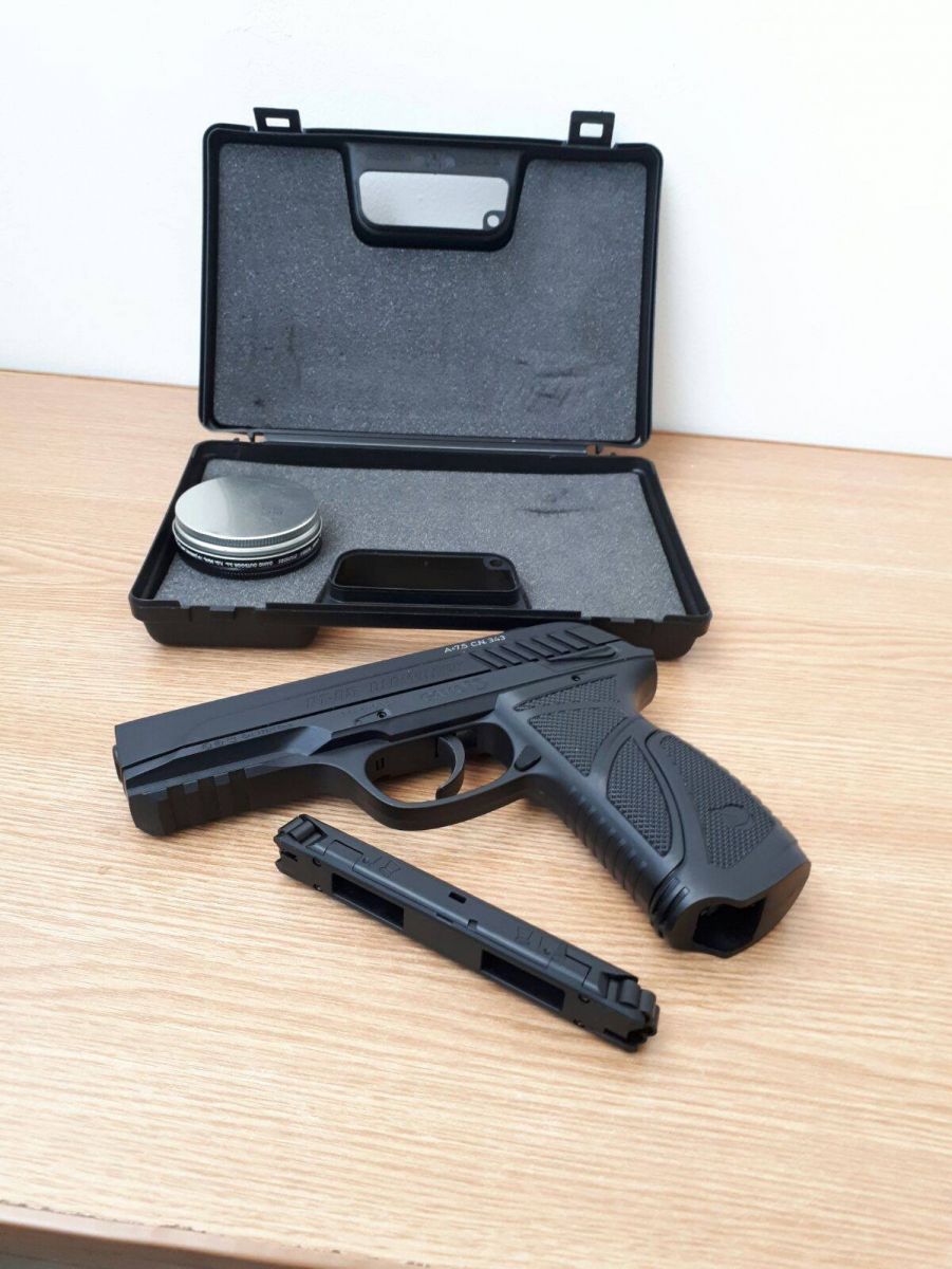 La controlul de frontieră, cetăţeanul a declarat că deţine în portbagajul maşinii un pistol şi o cutie cu capse. Cu ocazia controlului amănunțit efectuat asupra autoturismului, poliţiştii de frontieră au descoperit în portbagaj un pistol marca GAMO, model PT85, cal 4,5 mm, şi o cutie metalică în care se aflau 445 capse marca Gamo.