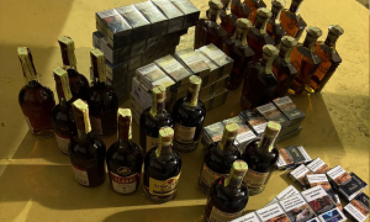 În bagajele bărbatului au fost descoperite mai multe bunuri accizabile: 3.200 țigarete și 24 de sticle de alcool.