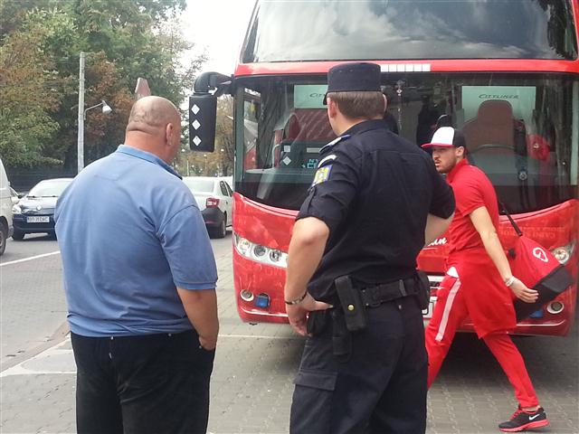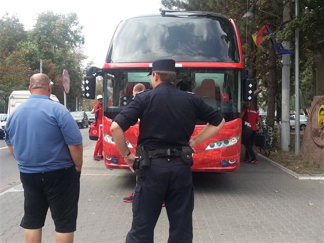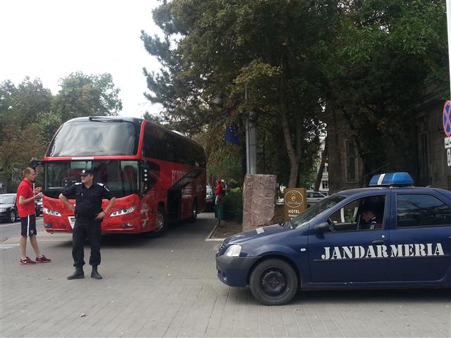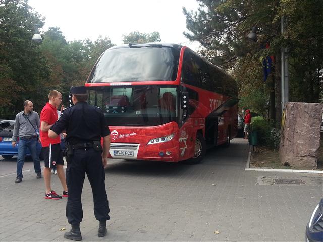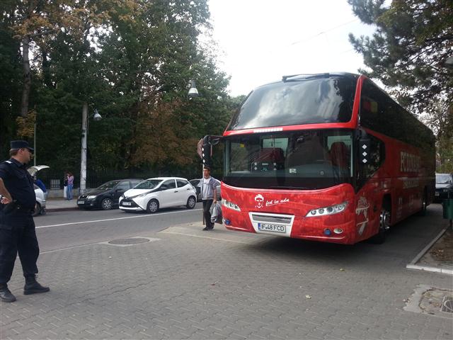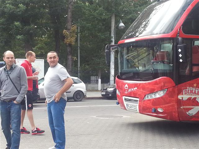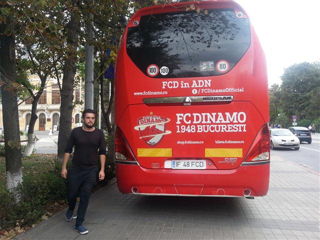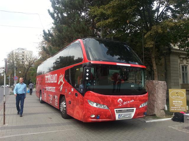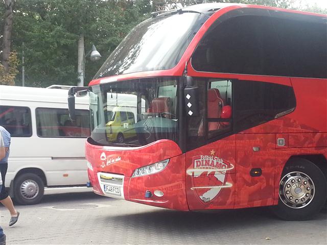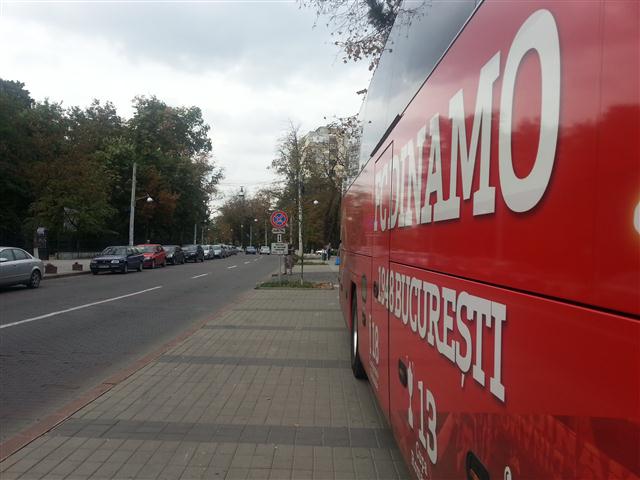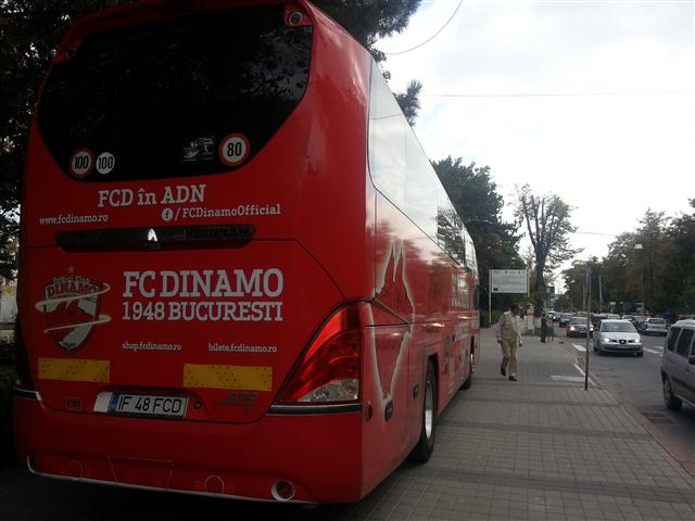 Sau mai bine spus, pe trotuar. Autocarul clubului a stat ieri zeci de minute parcat pe trotuarul de lângă Inspectoratul de Poliție Județean, în timp ce jucătorii se aflau pe terasa Hotelului Maria. O mulțime de botoșăneni care simpatizează formația din șoseaua Ștefan cel Mare au fotografiat autocarul roșu cu însemnele clubului și număr pe măsură: IF 48 FCD, 1948 fiind anul în care a luat ființă clubul Dinamo. Autocarul a fost flancat de jandarmi, în timp ce şoferul apostrofa unii fotbalişti că se deplasează prea agale spre mijlocul de transport. (S.B.)