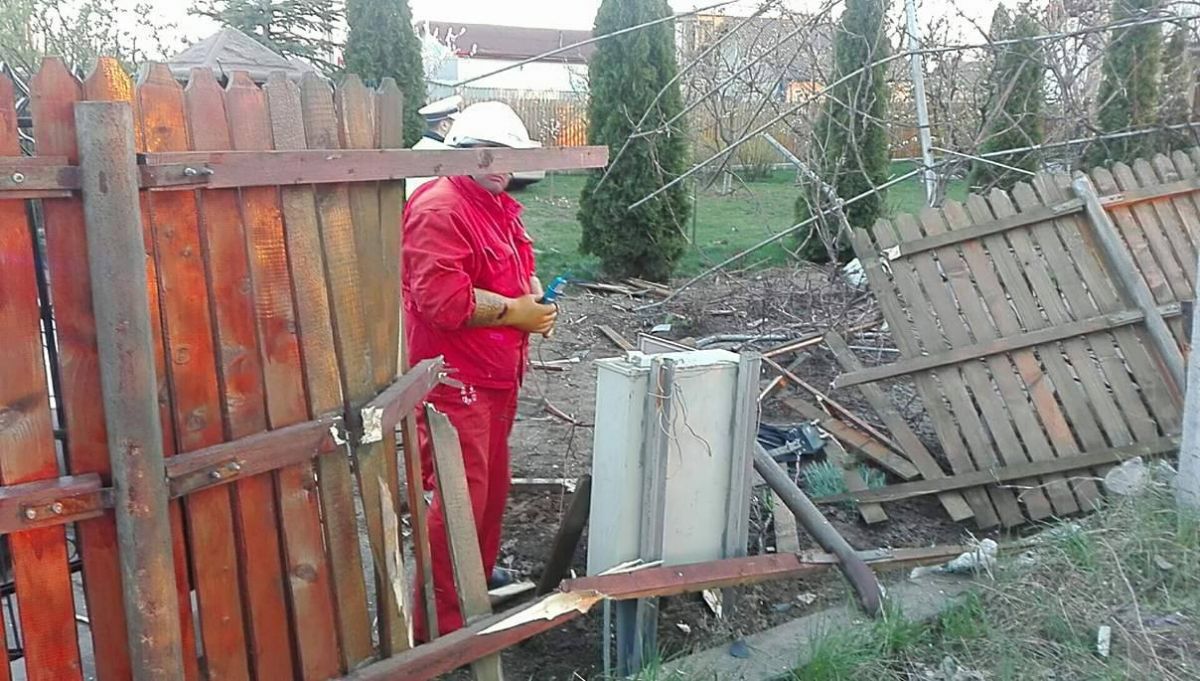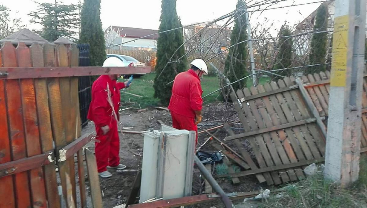 S-a oprit tocmai în gardul din cealaltă parte a curţii. Cele întâmplate i-au enervat pe membrii echipajului de la E.ON trimişi să remedieze avaria, care au proferat o ploaia de înjurături ca şi cum ar fi prestat o altă muncă, nu aceea pentru care au fost angajaţi.