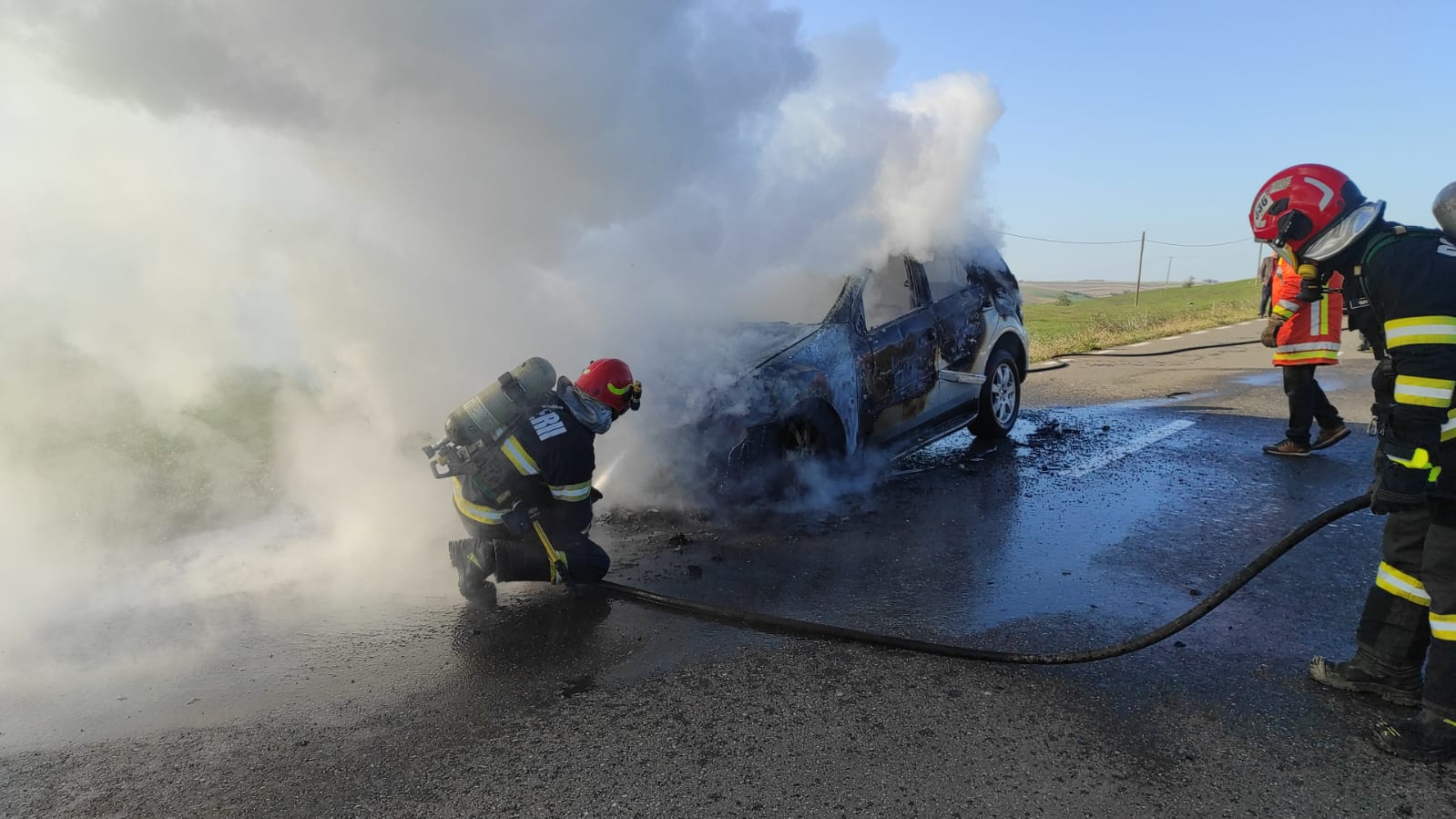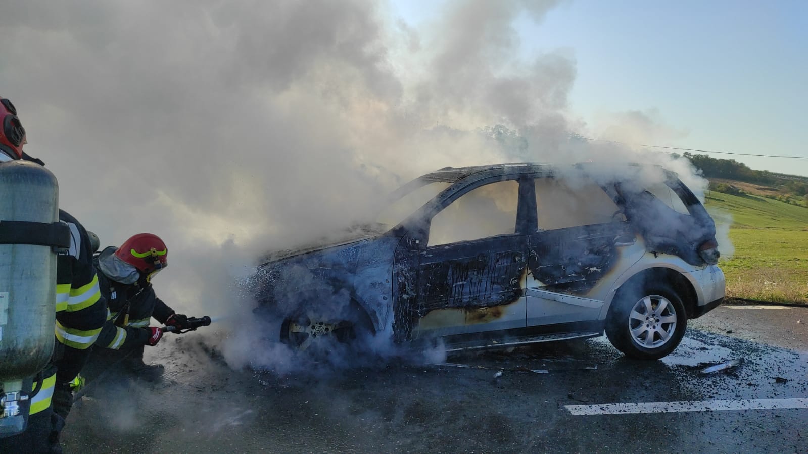 Aceștia au constatat faptul că autoturismul ardea în totalitate. Incendiul a fost stins în limitele găsite.