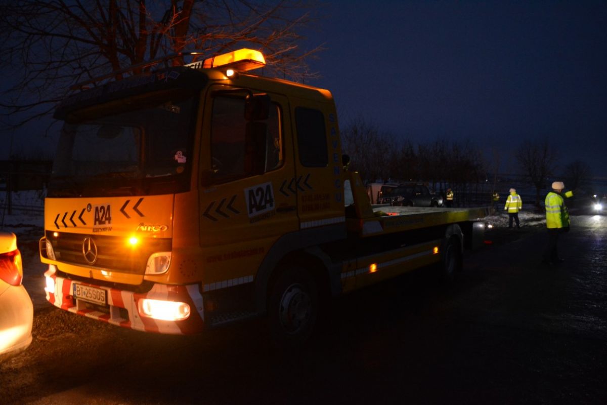 La faţa locului au sosit mai mulţi reprezentanţi ai firmei de construcţii căreia aparţinea maşina. Aceştia au trimis acolo angajaţi cu o altă autoutilitară care au început să cureţe zona producerii accidentului.