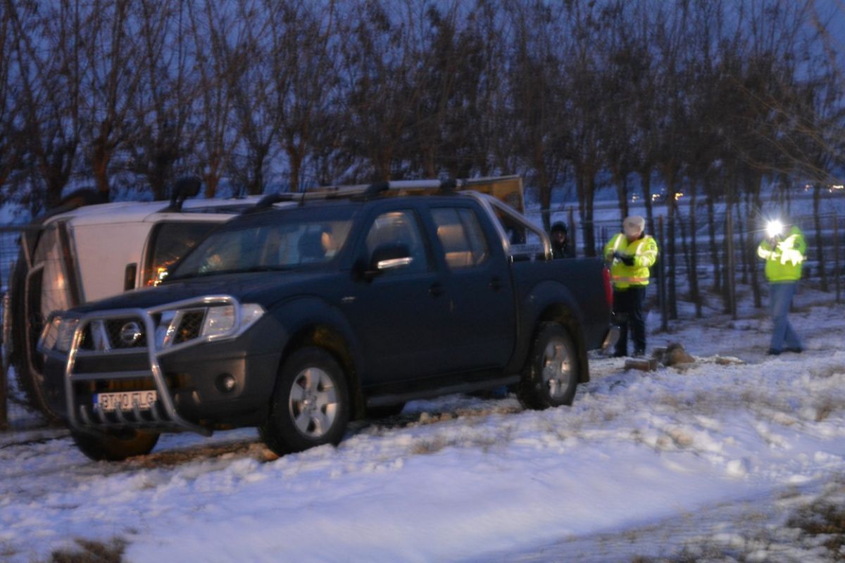 Maşina se sprijinea încă într-un gard, iar din primele măsurători efectuate de poliţişti ar fi reieşit că ar fi “zburat” câţiva metri, după ce a ieşit de pe şosea.