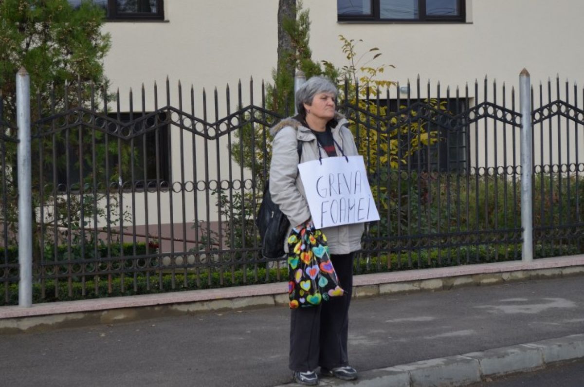 Nici vorbă! Femeia aflată în greva foamei, într-un ton de ”Nu renunț, nu renunț, e dreptul meu”, și-a reluat locul în fața Primăriei.