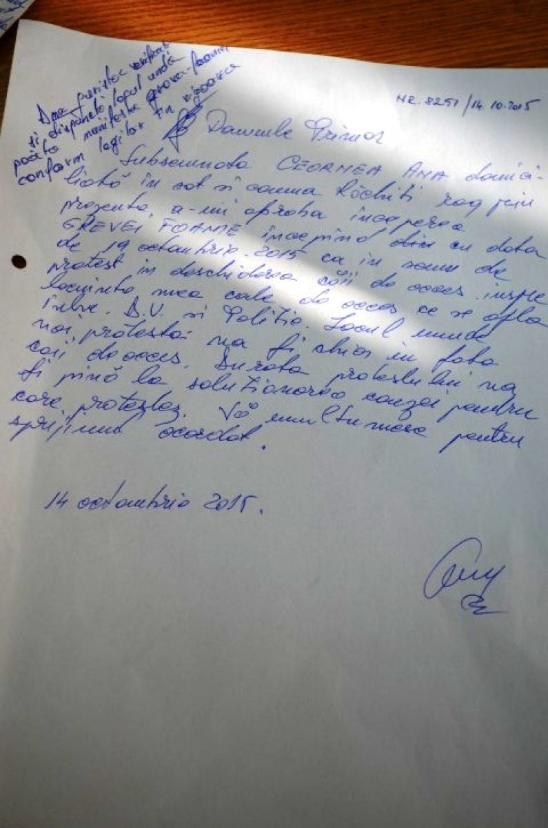 Femeia aflată în greva foamei nici nu a vrut să se uite la documentul din față decât după mai multe insistențe. Într-un final, după ce l-a parcurs rapid, a arătat că-și va continua demersul, de această dată motivul fiind cu totul altul.