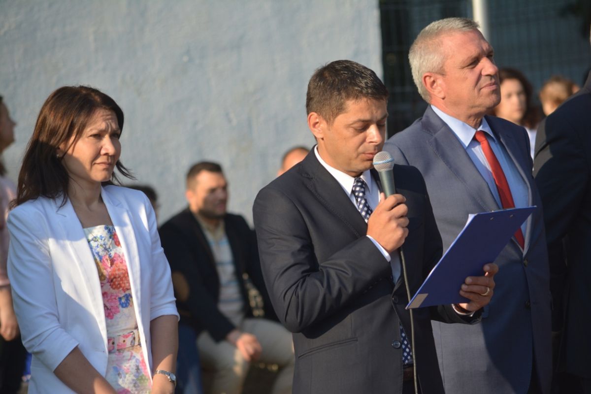 Costel Şoptică a fost remarcat cu întârziere de directoarele Şcolii 11 şi i s-a dat la sfârşitul cuvântul, după ce au vorbit preşedintele Consiliului Judeţean, Costică Macaleţi şi inspectorul şcolar general, Gabriel Hârtie.