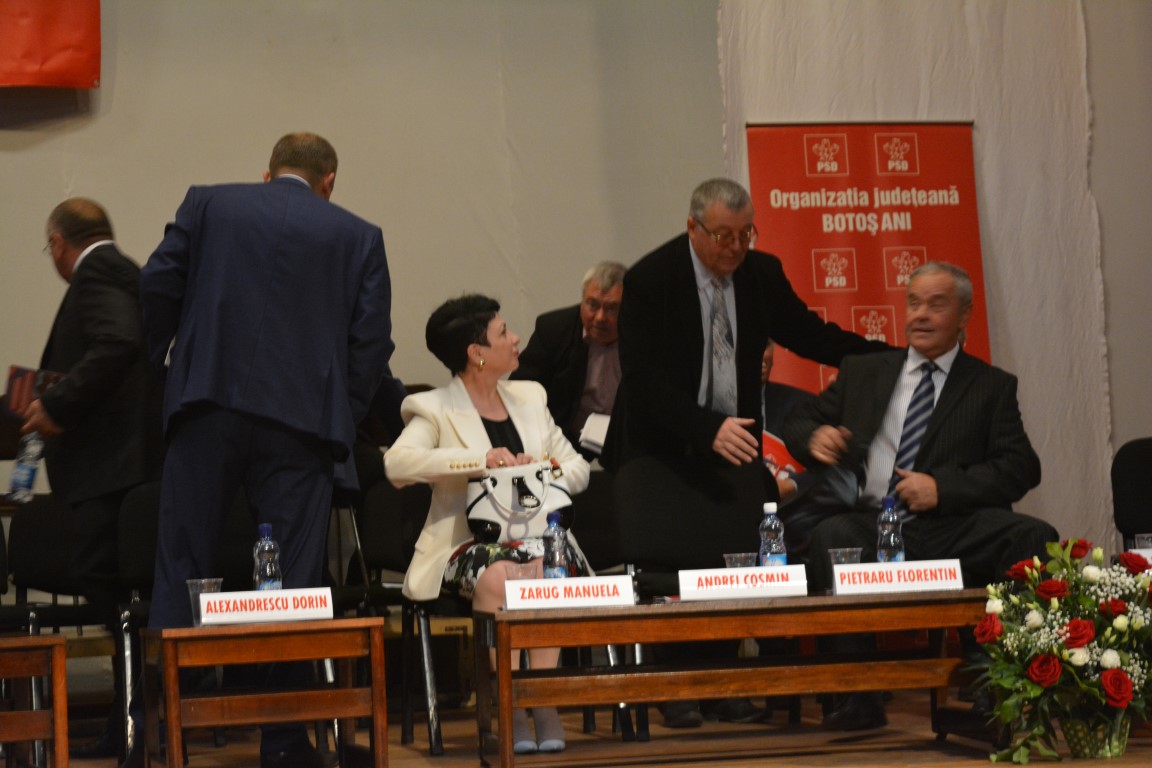 Astfel, în primul rând al prezidiului, pe scenă, a luat loc Manuela Zarug, care în cadrul şedinţei a fost realeasă vicepreşedinte al organizaţiei judeţene social-democrate. Tot în primul rând, dar în sală, a stat soţul acesteia, Alexandru Zarug, copreşedinte ALDE – Alianţa Liberalilor şi Democraţilor, formaţiune rezultată din fuziunea Partidului Conservator cu Partidul Liberal Reformator. Conform uzanţelor, acesta a fost invitat să transmită un mesaj delegaţilor.