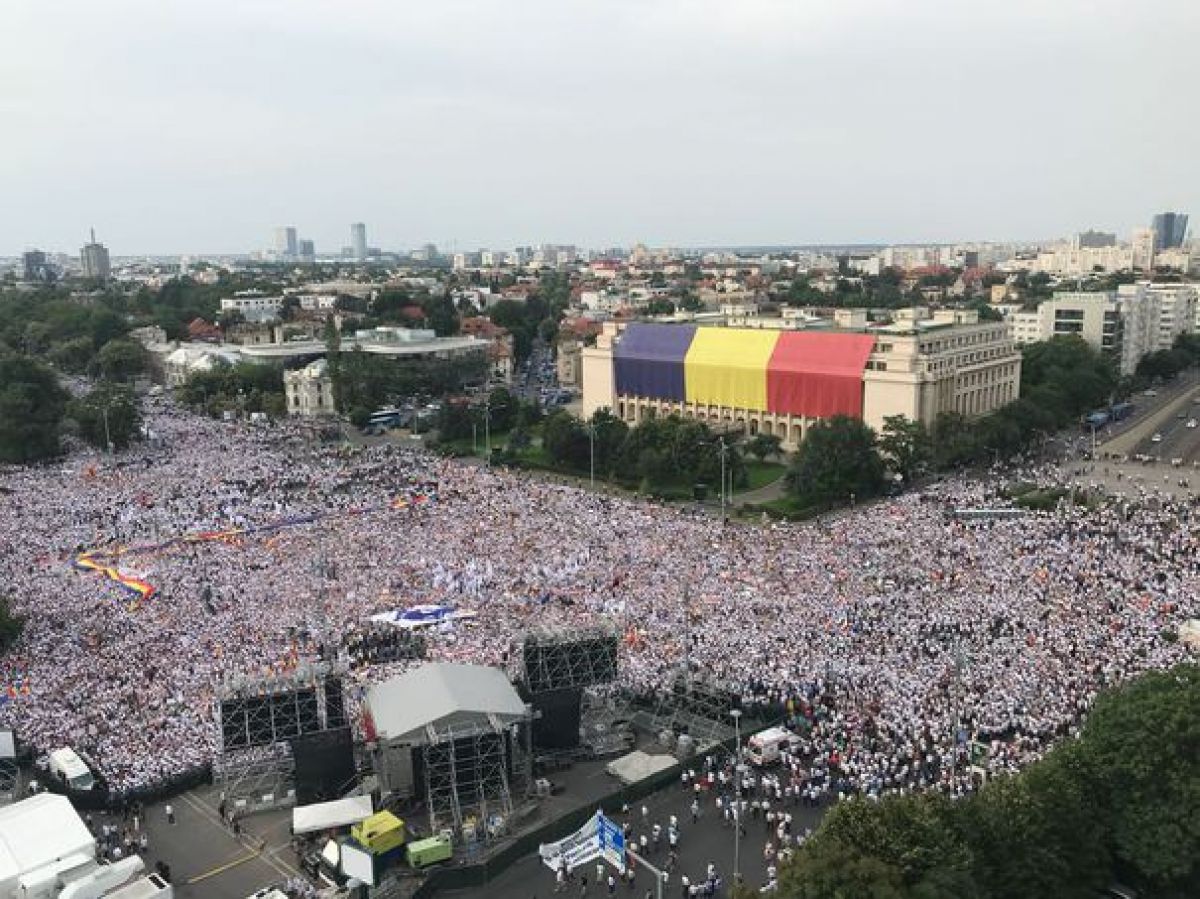 Îmbrăcată cu tricou alb și geacă albă, Andreea Bălan ar fi putut ușor să se strecoare și la ”celălalt miting”, dar artista a preferat să tragă cu ochiul, dar să și tragă și o concluzie. ”Oamenii de la mitingul PSD mi s-au părut triști. Nu se compară cu veselia de aici”,
