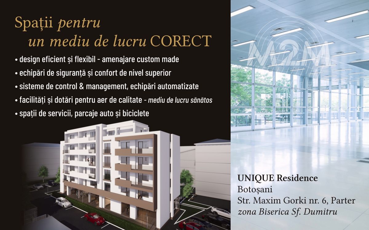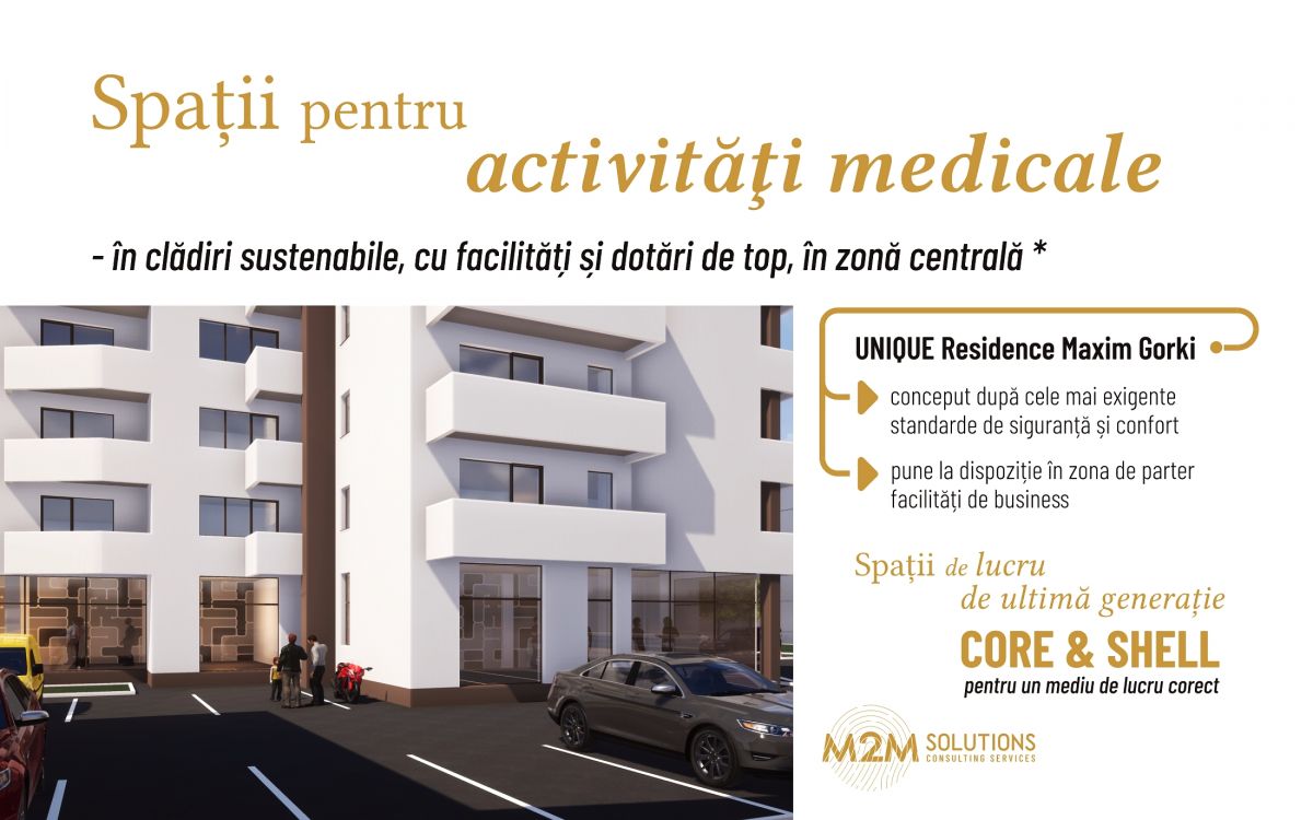 Conceput după cele mai exigente standarde de siguranță și confort, ansamblul UNIQUE Residence Maxim Gorki pune la dispoziție și facilități de business în zona de parter pentru spații medicale sau birouri: