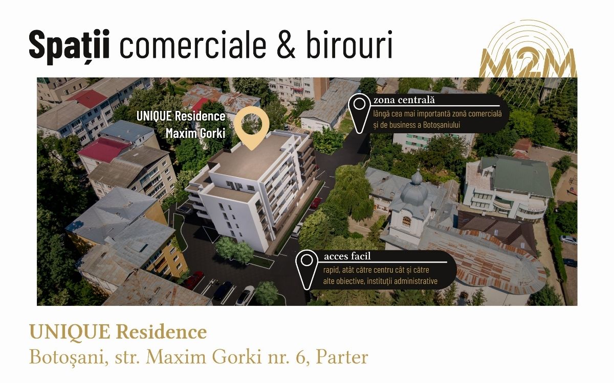 Proiectat pentru a răspunde în fapt celor mai exigente cerințe, ansamblul UNIQUE Residence Maxim Gorki, cu dotări și niveluri de echipare Premium, este destinat atât segmentului rezidențial cât și celui de business.