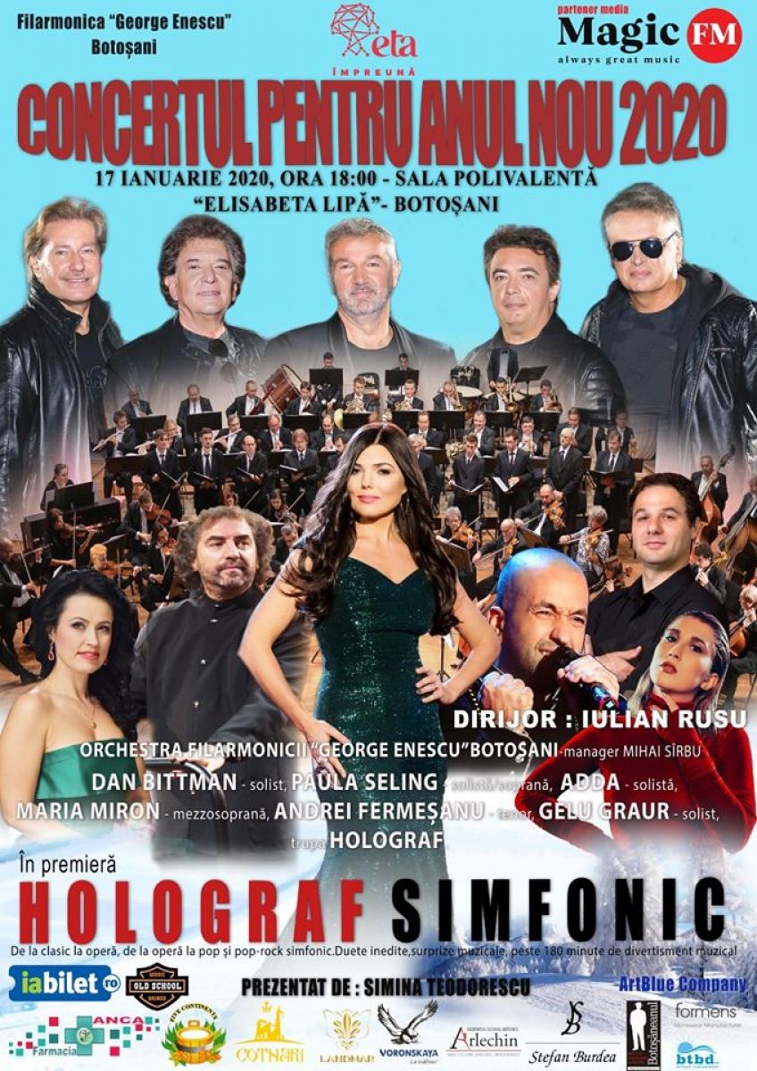 Holograf, Paula Seling, Adda, Maria Miron, Andrei Fermeșanu și Gelu Graur vor performa pe scenă, acompaniați fiind de Orchestra Simfonică a Filarmonicii ”George Enescu” Botoșani.