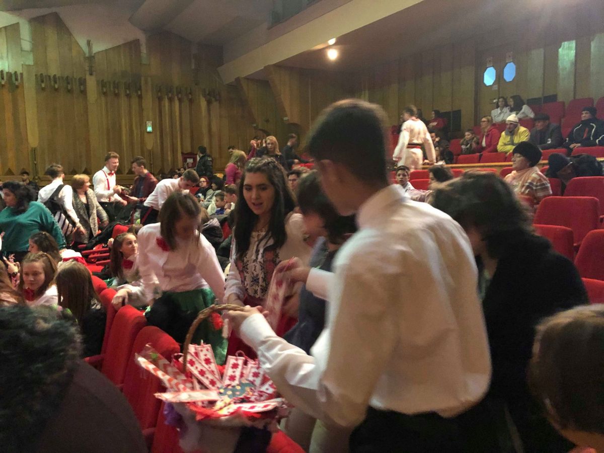 Cei mai fericiți, dar în același și emoționați au fost copiii din cadrul DGASPC. Unii dintre ei erau îmbrăcați în costume populare și împărțeau mărțișoarele handmade, în număr de 400.