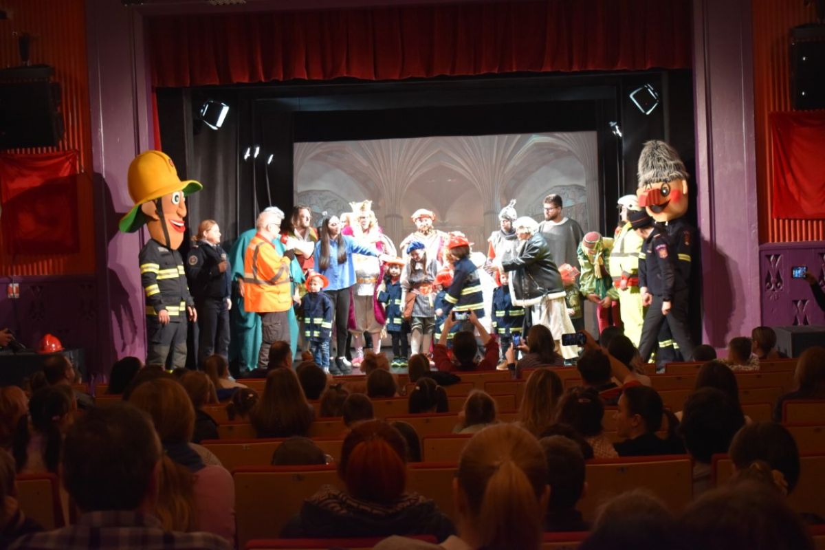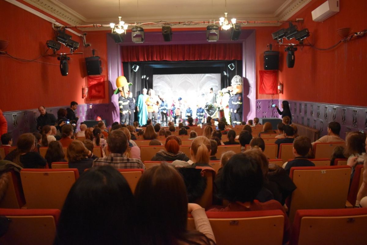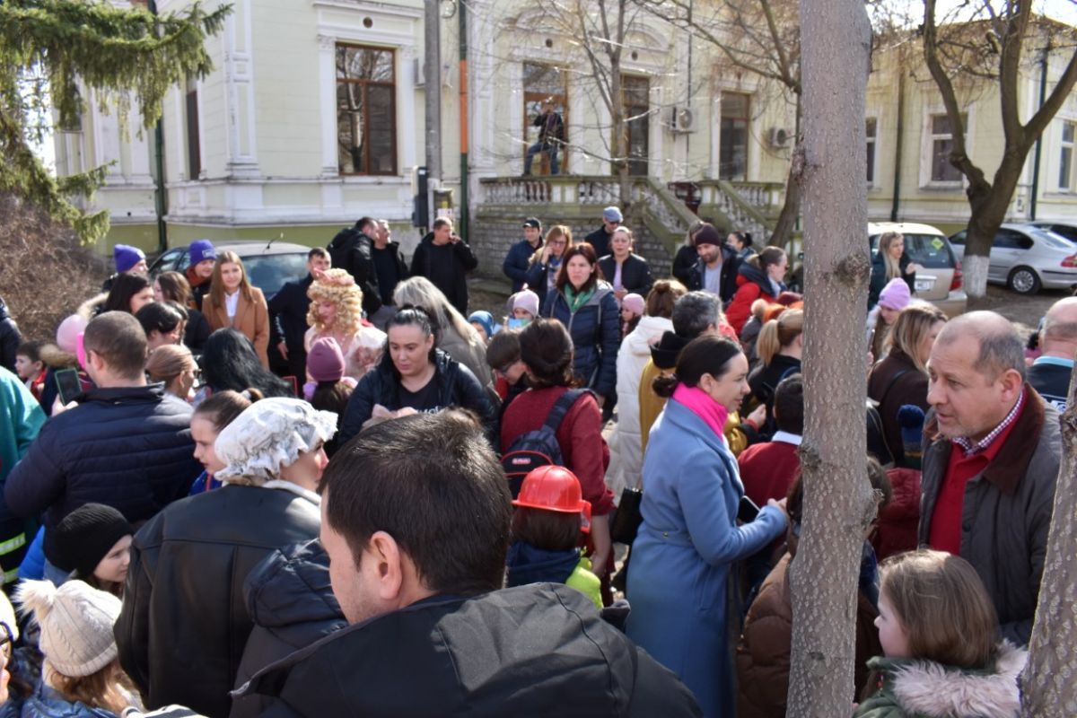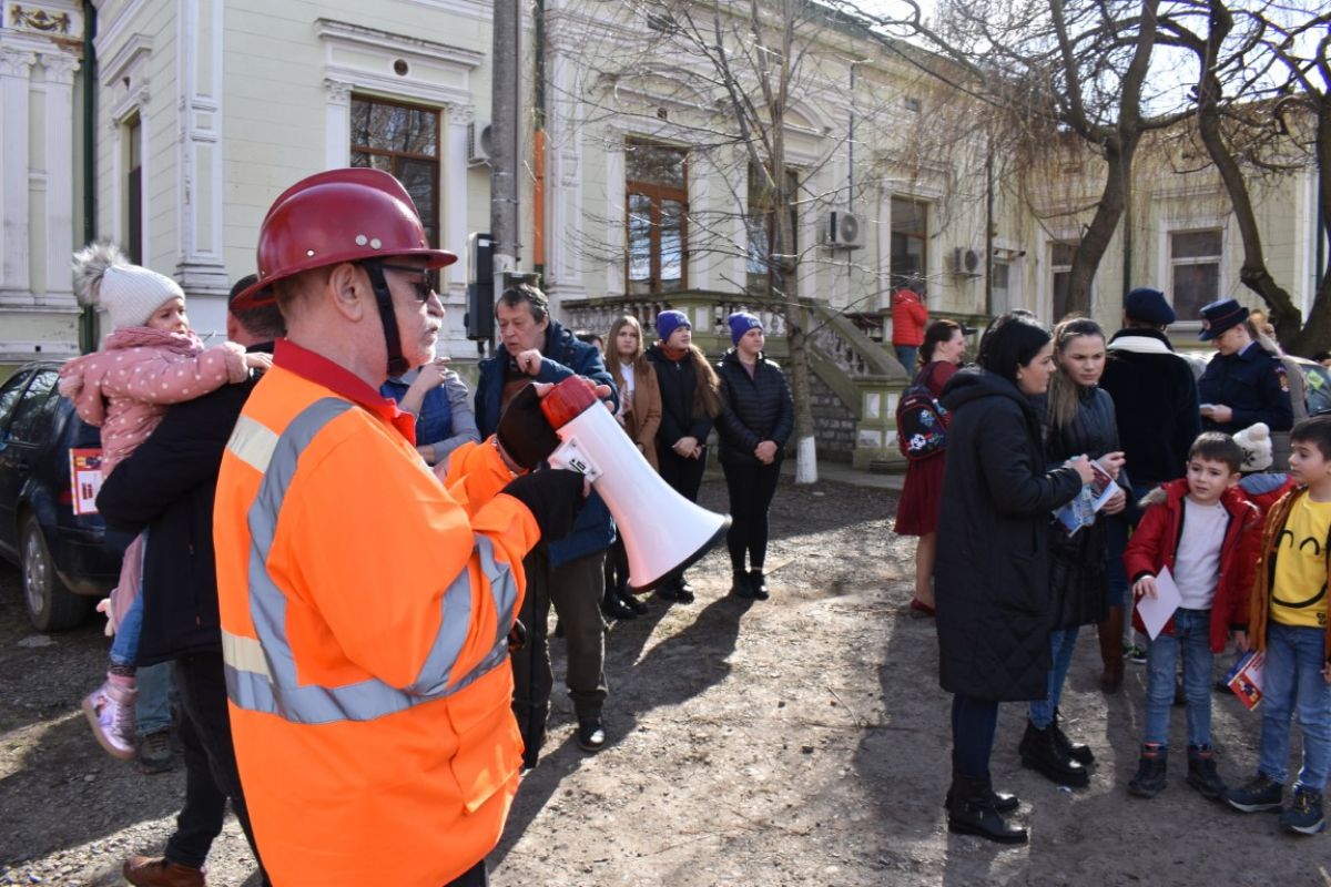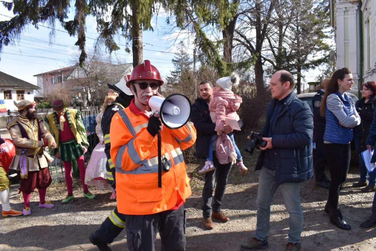 Directorul teatrului, Marius Rogojinschi s-a aflat printre cei care au oferit indicați copiilor care să fie ulterior familiarizați cu procedura într-o situație de urgență.