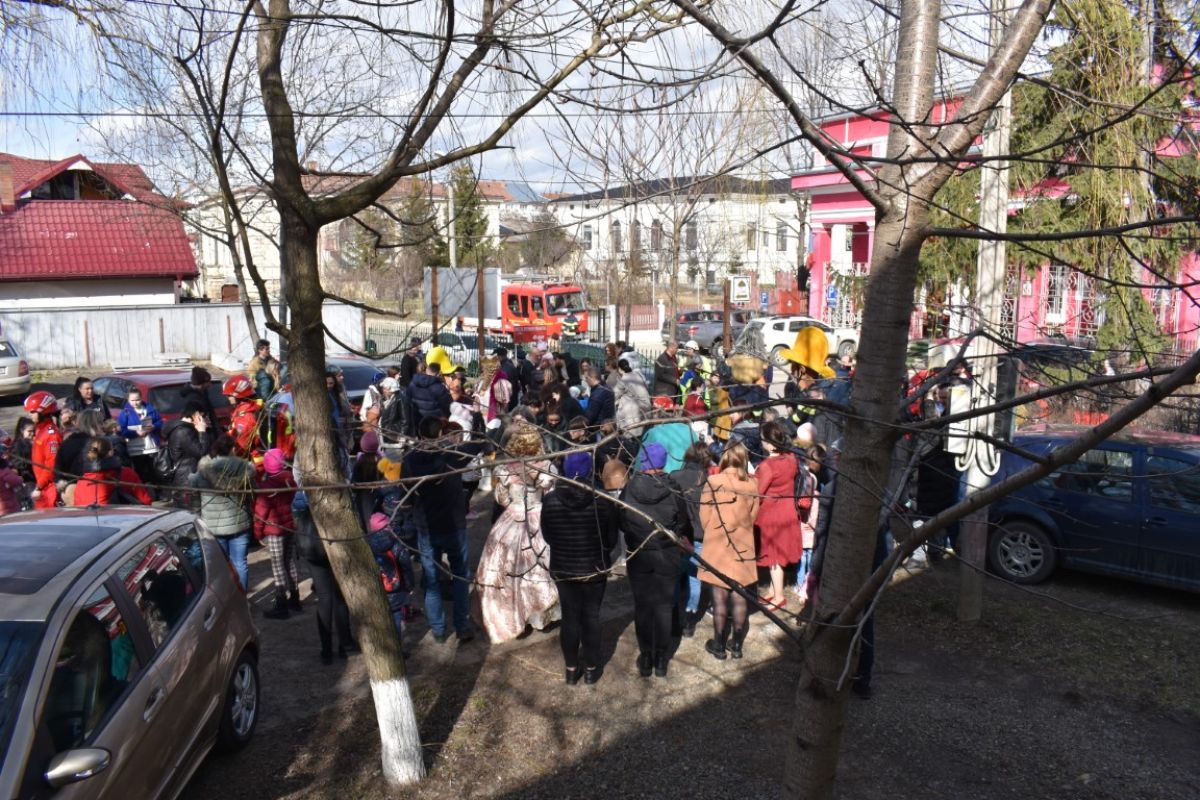 Toți cei prezenți au fost anunțați că vor participa la un exercițiu surpriză de evacuare în caz de incendiu. Și s-au urmat toate etapele premergătoare intervenției pompierilor, inclusiv un apel simulat la 112.