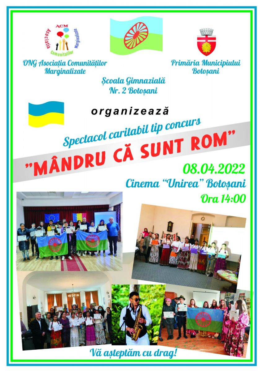 Instituția Prefectului județul Botoșani, prin Biroul județean pentru romi, sprijină Asociația Comunităților Marginalizate ACM, în parteneriat cu Primăria Municipiului Botoșani și Școala Gimnazială Nr. 2 Botoșani, în organizarea Zilei Internaţionale a Romilor, în data de 8 aprilie 2022, dedicată copiilor refugiați din Ucraina.