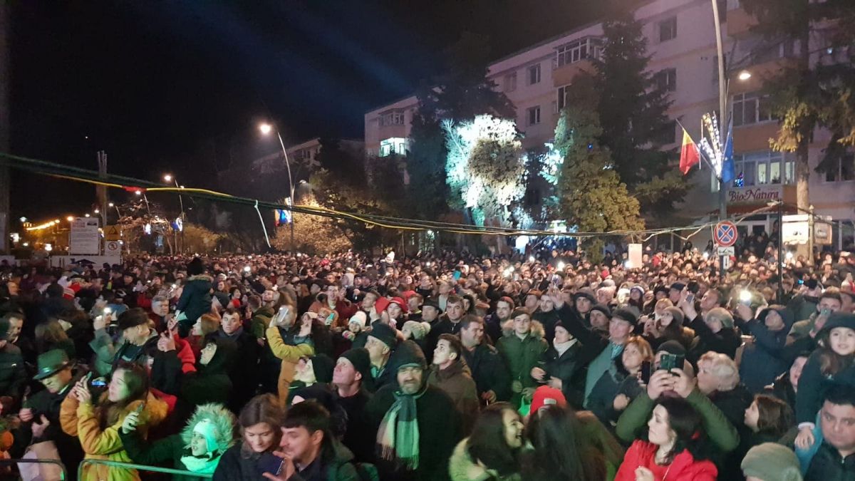 Băieți și fete îmbrăcați tradițional au oferit un moment pe cinste botoșănenilor care s-au grăbit să prindă locuri în față la spectacolul de Revelion.