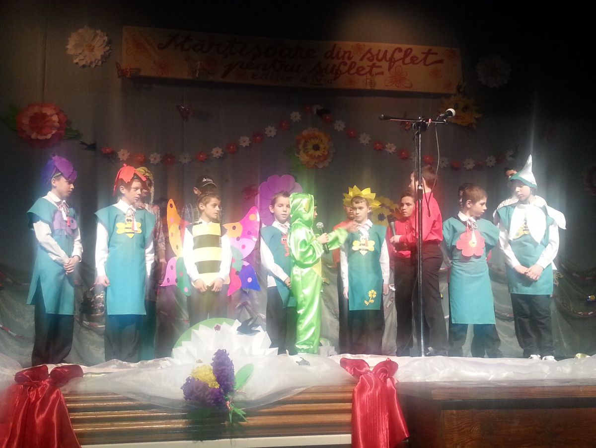 Costumați în fluturi, flori și iepurași sau îmbrăcați de sărbătoare, protagoniștii spectacolului au cântat, au recitat versuri au dansat și au prezentat scenete și momente de pantomimă. Cântecele și versurile au vestit primăvara sau au fost dedicate doamnelor, mamelor, dar și părinților cărora mulți dintre copii le duc dorul. Dansurile au fost moderne, tematice sau inspirate din folclor. Prin scenetele la care am fost martori, copiii ne-au învățat despre iubire, prietenie, bunătate și perseverență sau ne-au relatat legenda mărțișorului și a soarelui.