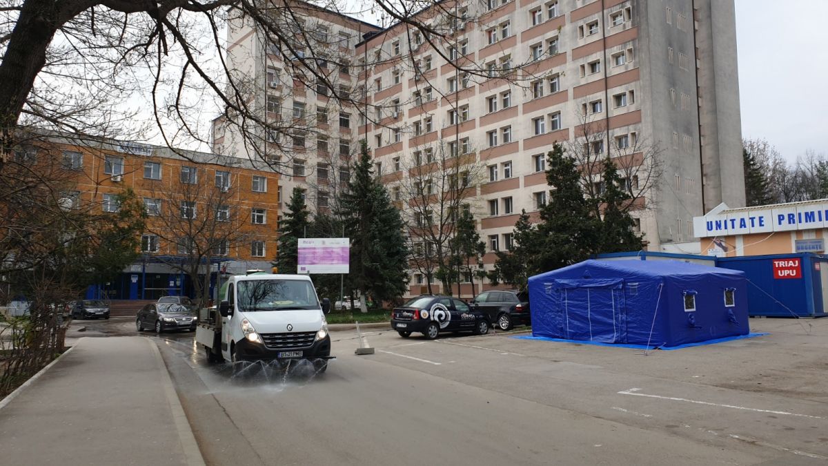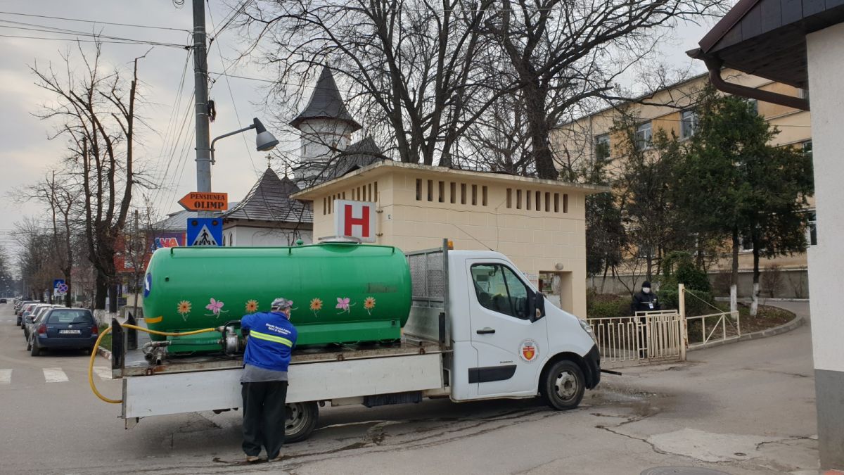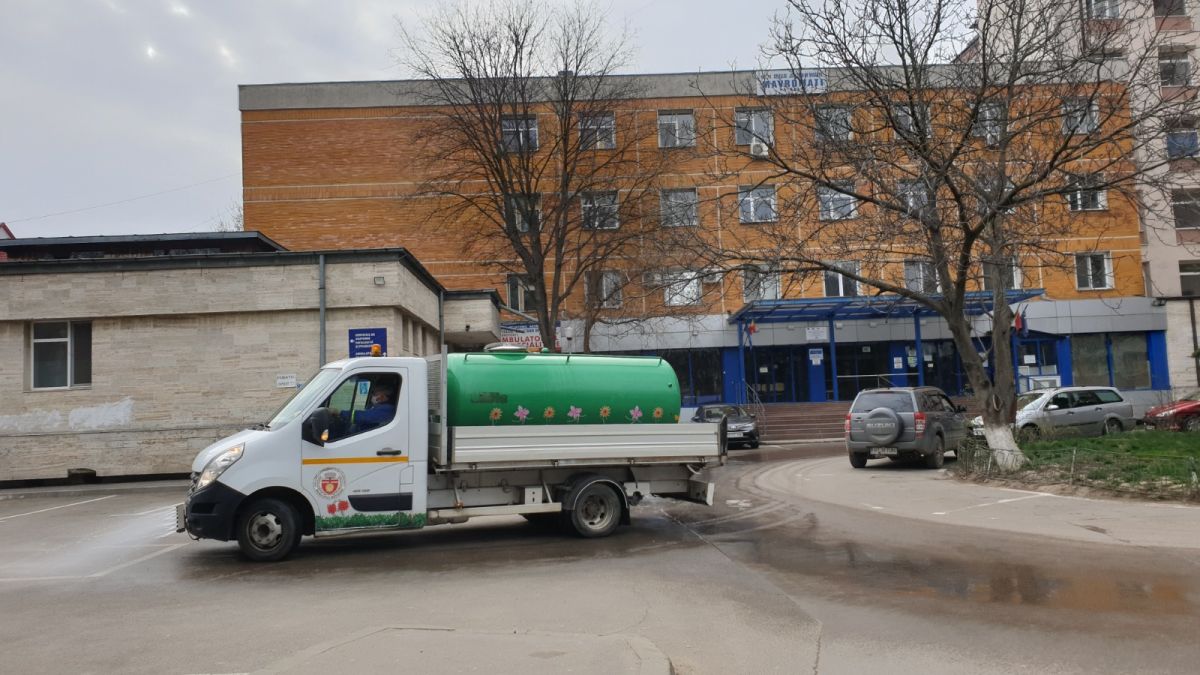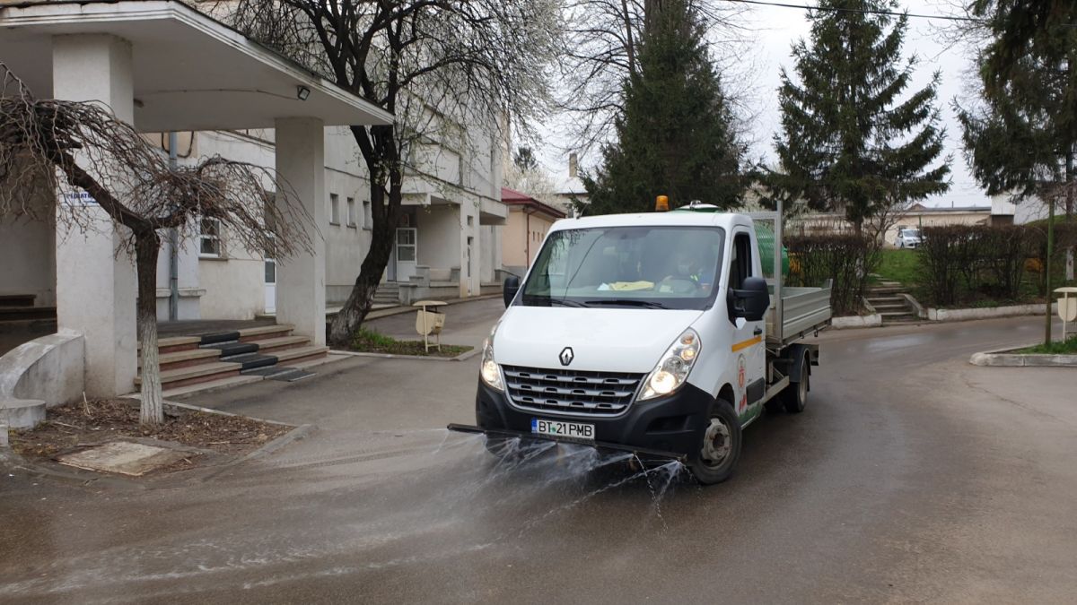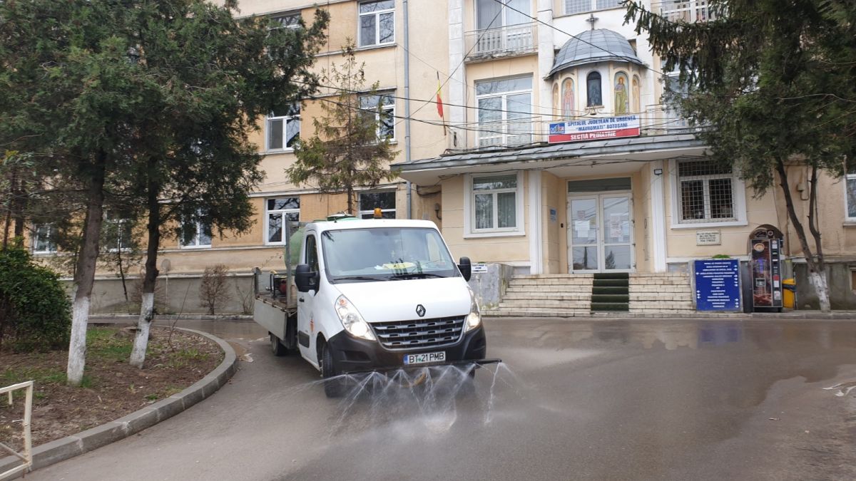 Angajații DSPSA Botoșani au efectuat în această dimineață dezinfecția incintelor spitalelor din municipiul Botoșani și a câtorva străzi.