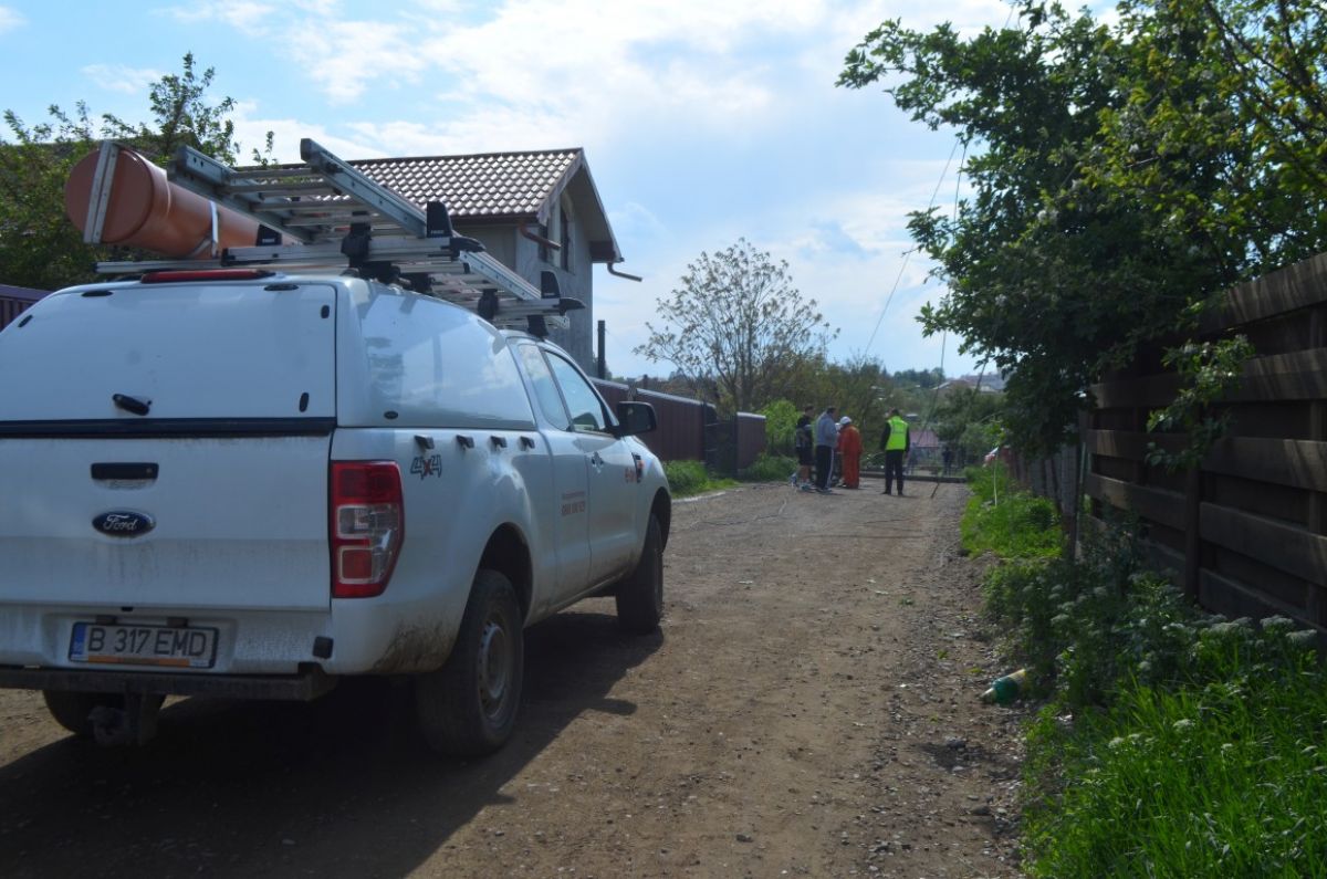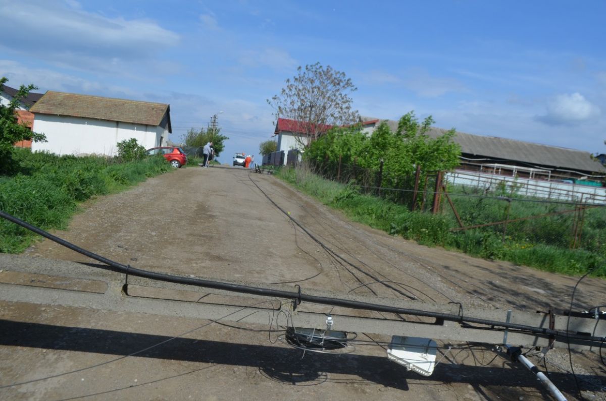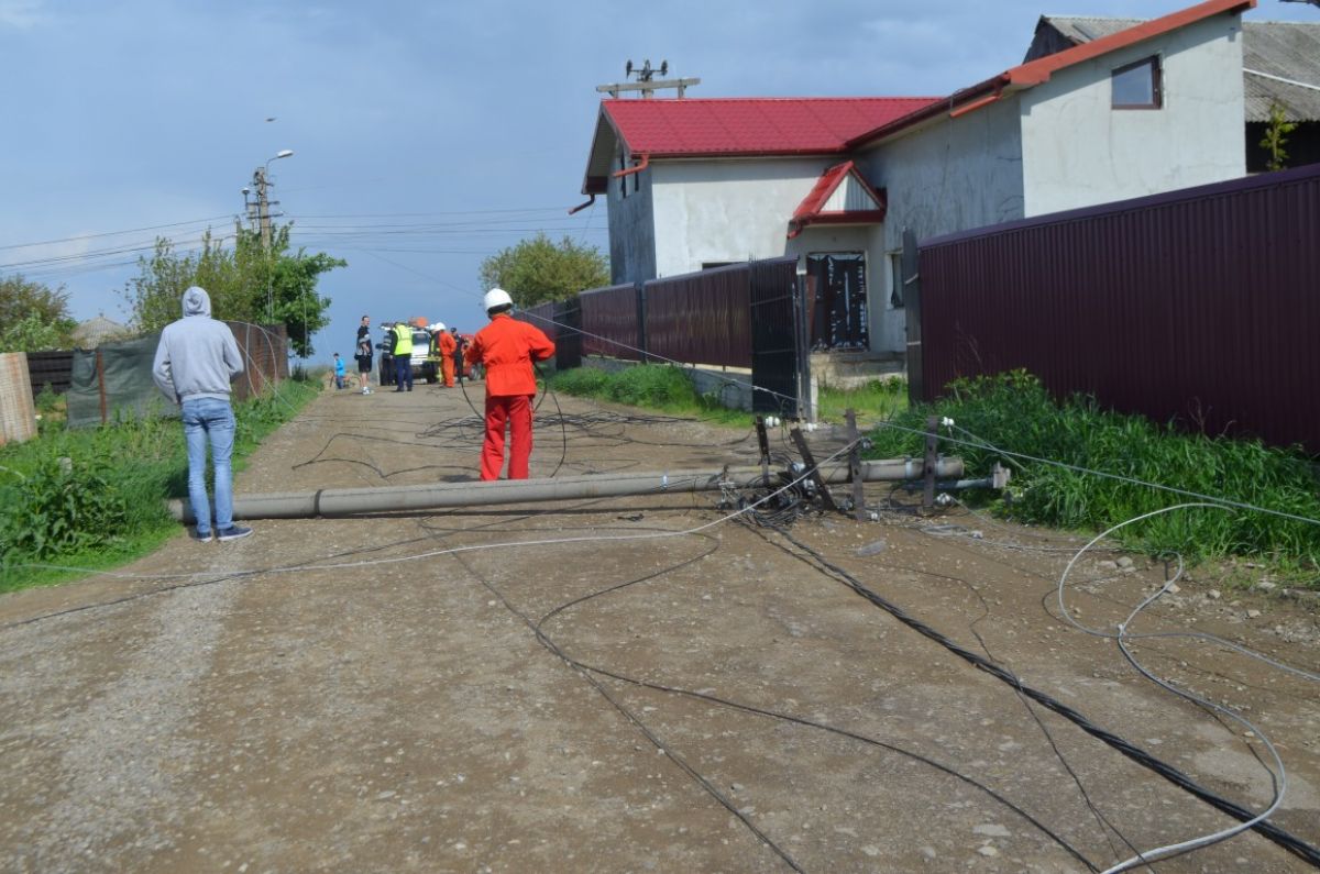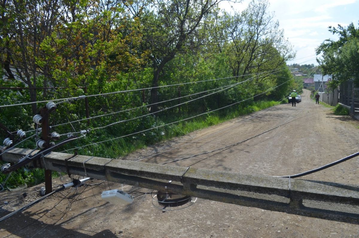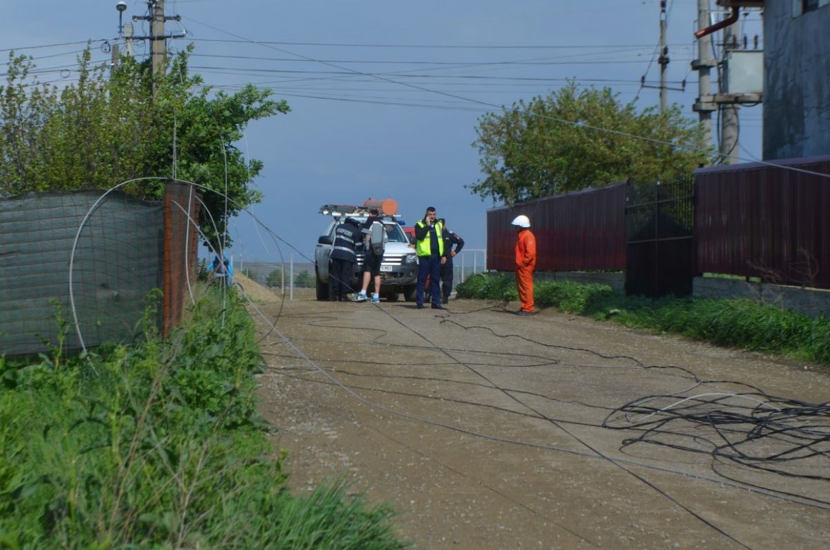S-au deplasat pe strada Gheorghe Hasnaș și polițiștii locali și rutieri dar și echipaje ale ISU și E.ON. Cei doi stâlpi vor fi ridicați cel mai probabil cu o macara. (G.E.)