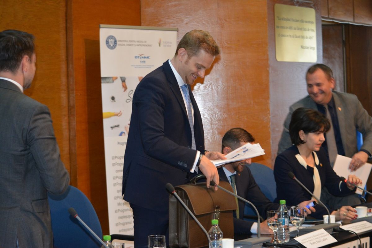 “În ultimii ani de zile există un dezechilibru în ceea ce priveşte înfiinţarea de noi societăţi versus numărul celor care se închid şi, din păcate, în România există astăzi un dezechilibru în acest sens. Printre măsurile pe care Guvernul României şi le propune, sunt mai multe măsuri care stimulează şi încurajează mediul de afaceri. Dorim inclusiv prin intermediul acestui program să încurajăm cât mai mulţi tineri şi nu numai tineri, fiindcă nu este un program care are o limită de vârstă, să apropiem cât mai mulţi oameni de zona de antreprenoriat. Este o chestiune în care noi credem foarte mult”,