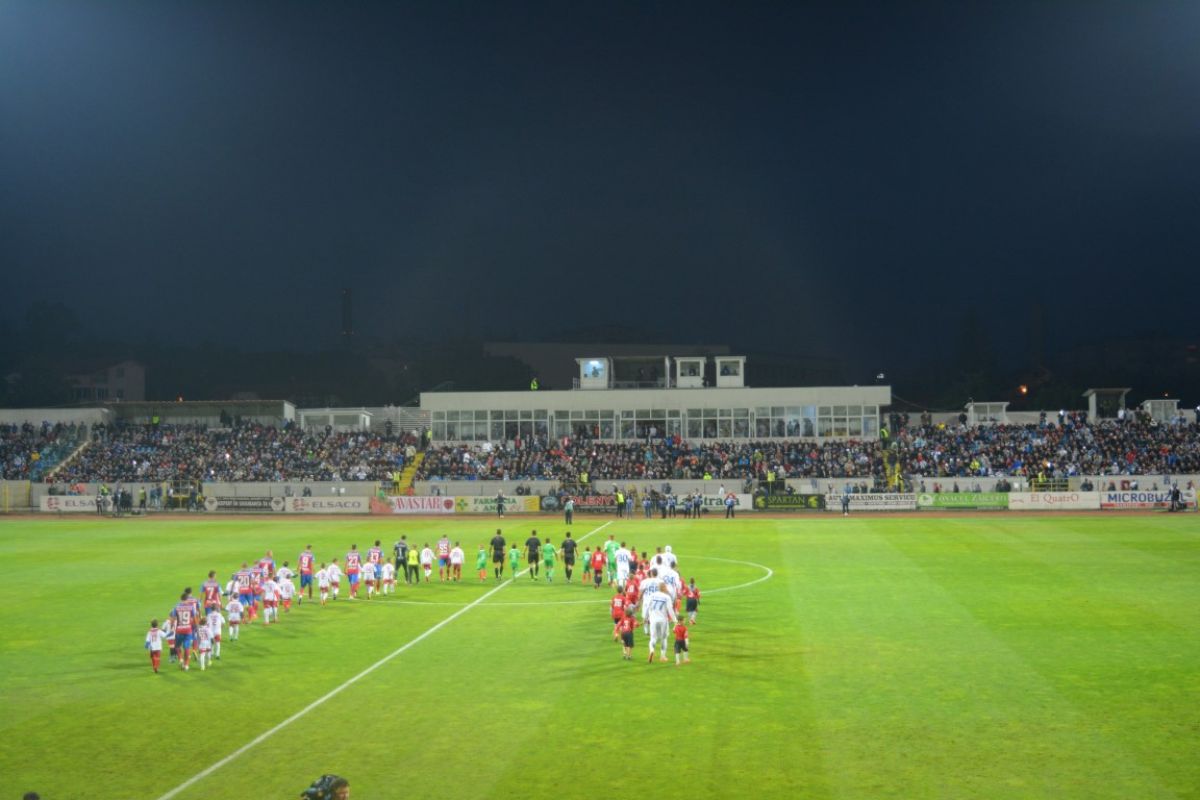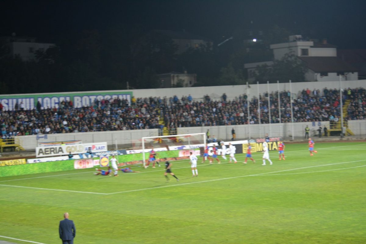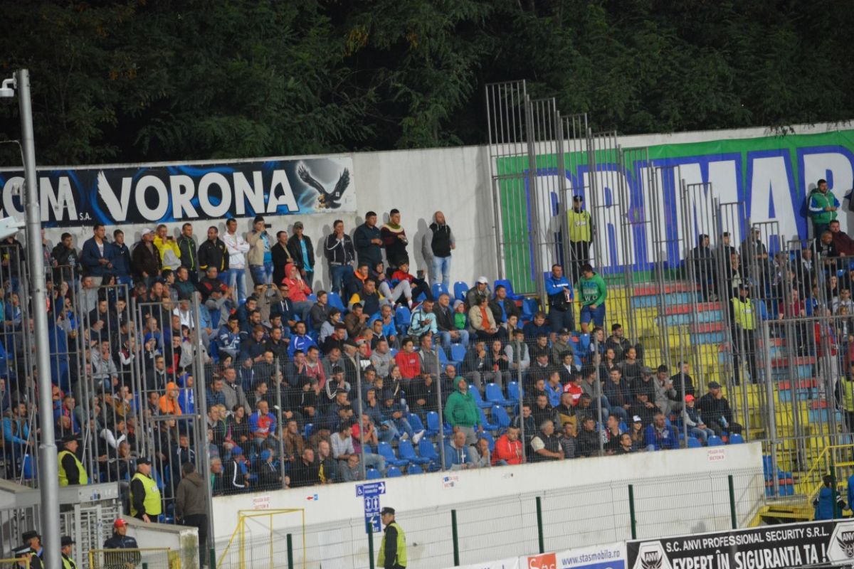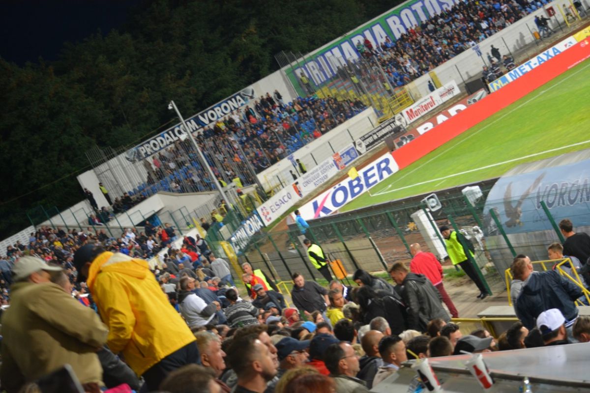 Astfel, spre deosebire de precedentele confruntări cu fosta echipă a MApN-ului, de această dată sectorul rezervat oaspeţilor are destule locuri goale. De asemenea, nu există nici măcar un banner de gard, care de obicei marchează prezenţa unei galerii. De altfel, cei aproximativ 150 de oameni prezenţi în acea parte a arenei par departe de a fi ultraşi, mulţi dintre ei fiind preocupaţi cu mâncatul seminţelor.