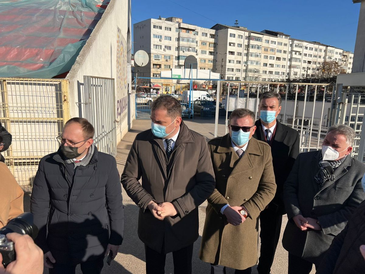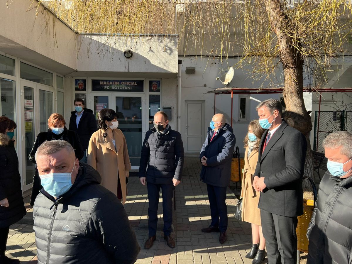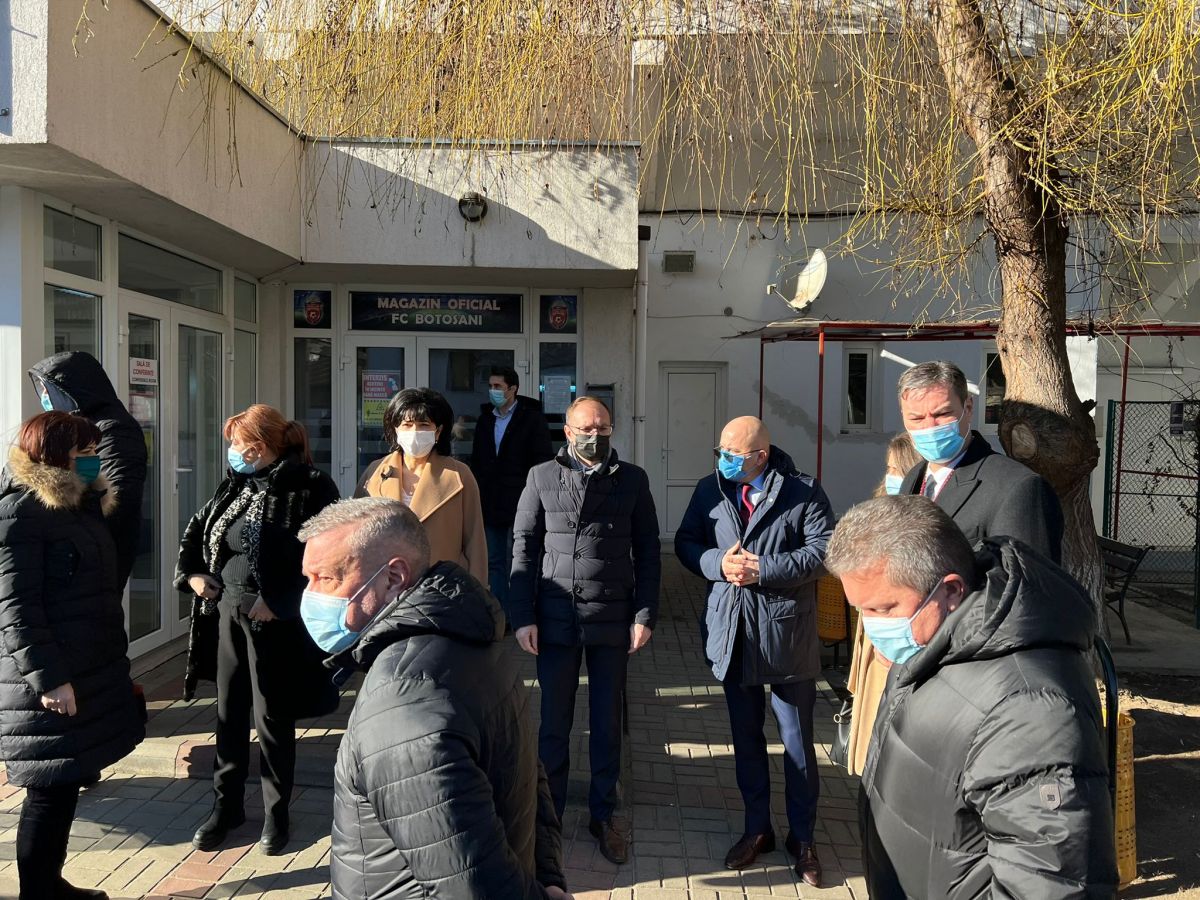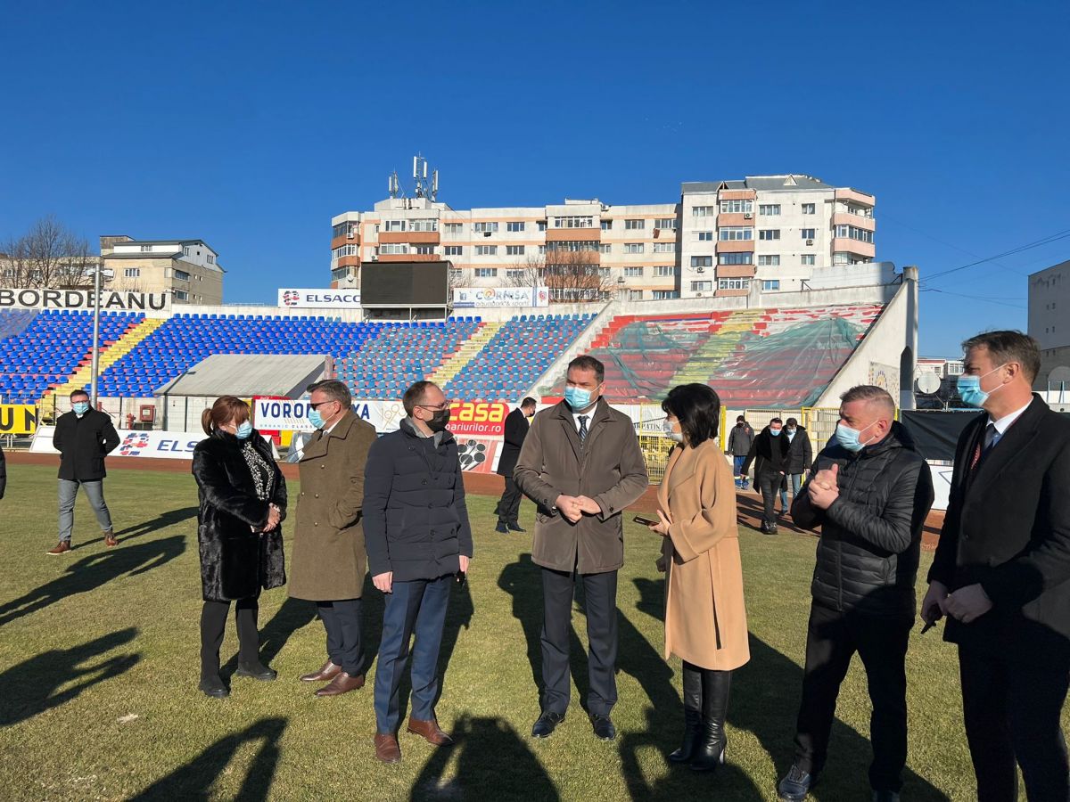 Primarul Cosmin Andrei, alături de președintele FC Botoșani, Cătălin Anton, i-au prezentat ministrului date tehnice despre arena sportivă de la Botoșani, construită în anii 60-70, și care de-a lungul anilor a avut parte de reabilitări la nivel minimal și nu de amploare.