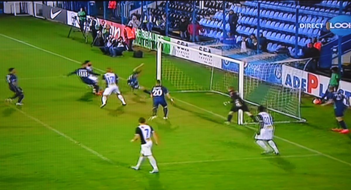 Min 45: Romario Benzar dechide scorul din lovitură liberă, mingea trimisă peste zid, Iliev fără reacţie