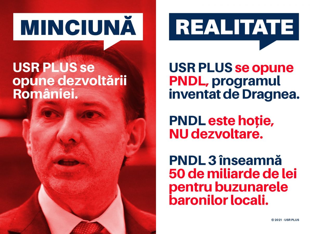 USR PLUS susține dezvoltarea reală a tuturor comunităților locale, prin programe transparente și investiții care să facă viața mai bună românilor. În forma susținută de premierul Cîțu, PNDL 3 este însă o hoție.