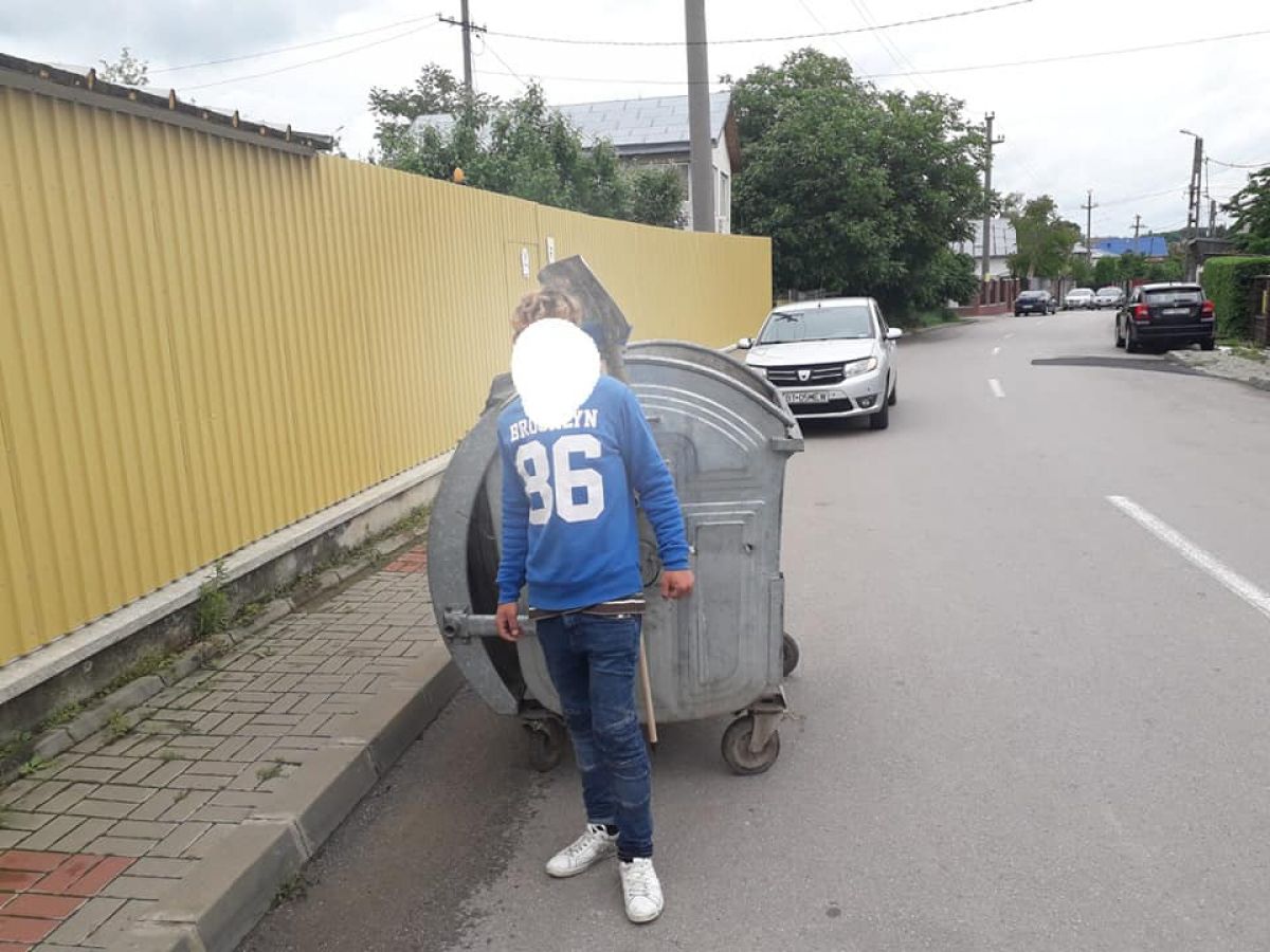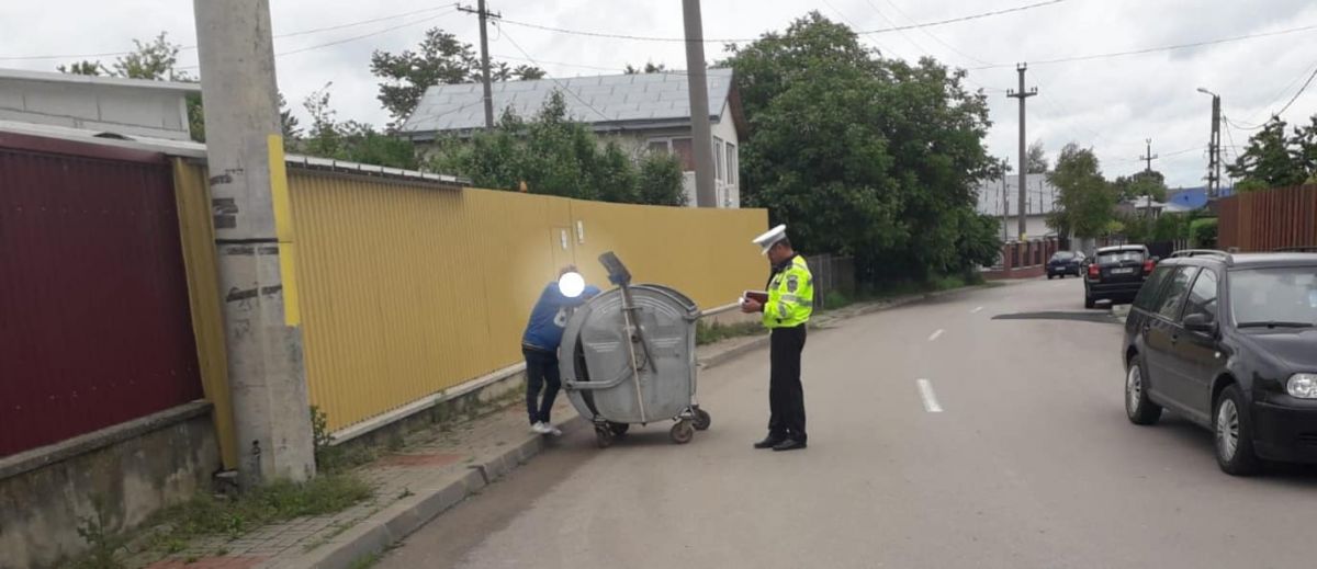 Astăzi un tânăr a fost surprins de un echipaj al Poliției Locale, după ce a sustras un eurocontainer de gunoi menajer, din zona Pod de Piatră.