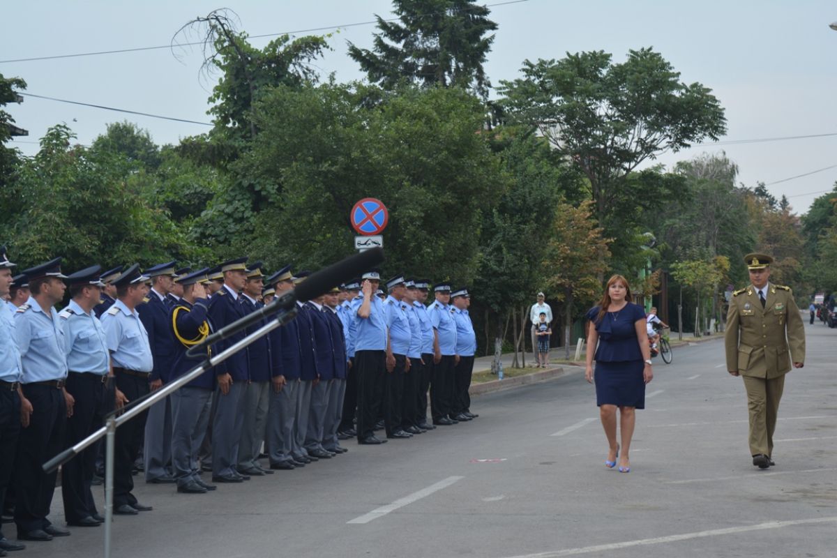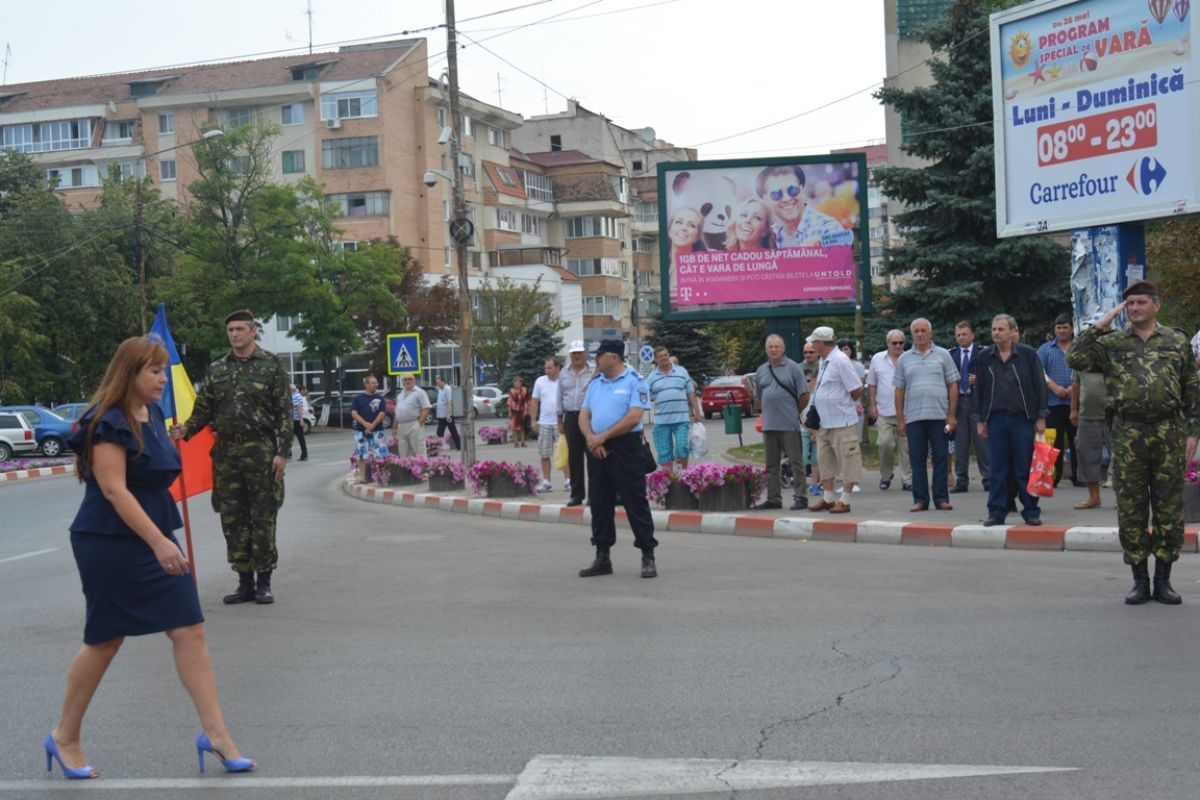Prefectul Dan Nechifor este în concediu de odihnă, astfel încât instituţia a fost reprezentată de al doilea om din ierarhie. Cum potrivit legii şeful Prefecturii este cel căruia i se dă onorul, Daniela Beclea s-a bucurat de acest privilegiu. Ea a condus coloana oficialităţilor, care s-a oprit la sensul giratoriu de la intersecţia dintre Cuza Vodă şi Marchian, după care a trecut singură în revistă dispozitivul militar şi a adresat tradiţionalul „bună ziua”, primind în schimb la fel de tradiţionalul „să trăiţi”.