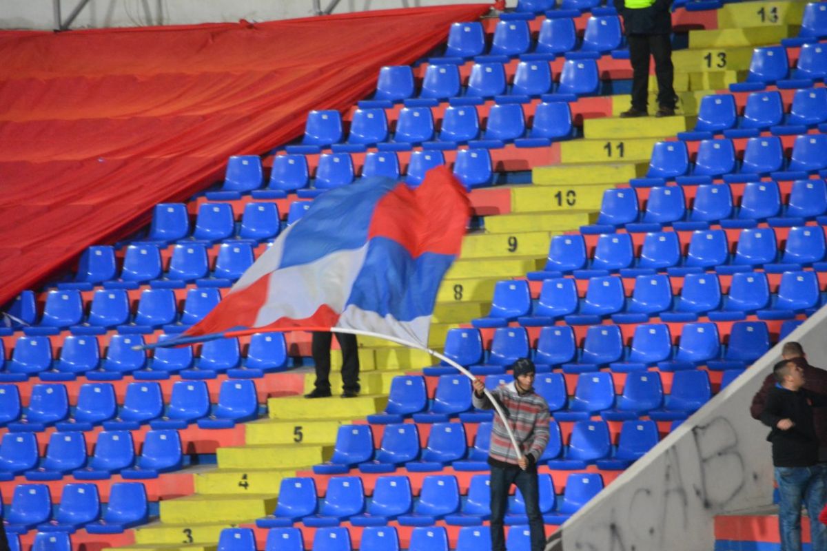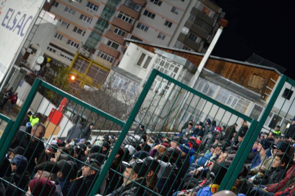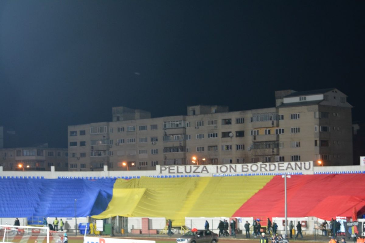 Suporterii din Transilvania au luat loc în sectorul de peluză rezervat oaspeţilor, unde nici nu strigă, nici nu agită steaguri sau eşarfe. De altfel, le lipseşte şi tradiţionalul banner de gard prin care galeriile îşi marchează prezenţa pe stadion. De partea cealaltă, la peluza Ion Bordeanu a fost din nou întins un uriaş tricolor, desfăşurat acolo şi la partida precedentă, jucată la o zi după 1 Decembrie. La aceeaşi peluză sunt prezenţi şi aproximativ 60 de componenţi ai „Dark Hooligans” care au combinat scandările "România, România" cu... "Mu... CFR". (S.B.)