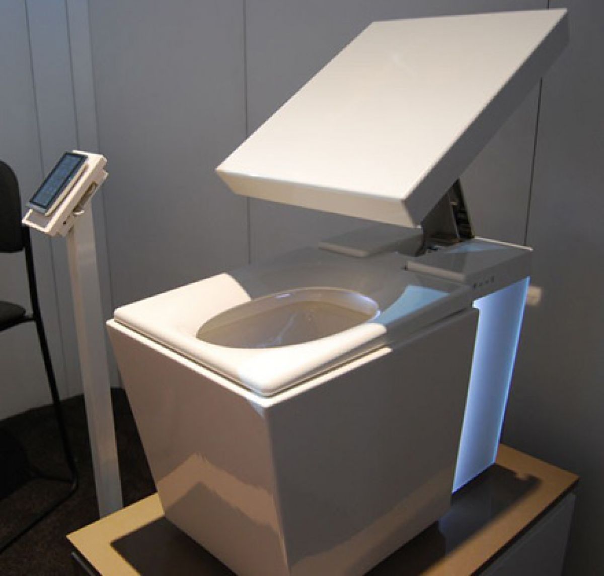 Toaleta Numi, a producatorului Kohler, de exemplu, disponibila la pretul de 6.500 de dolari, are incorporate un purificator de aer, un umidificator, un filtru pe baza de carbune pentru odorizarea aerului, pe langa capacul care se ridica la comanda consolei si se coboara singur, cand presiunea de pe capac dispare. Mai mult, capacul si taburetele pe care stau picioarele pot fi inlalzite, iar toaleta are si un set de boxe atasat, la care se poate asculta muzica fie in format MP3, fie la radio (inclus si el in toaleta).