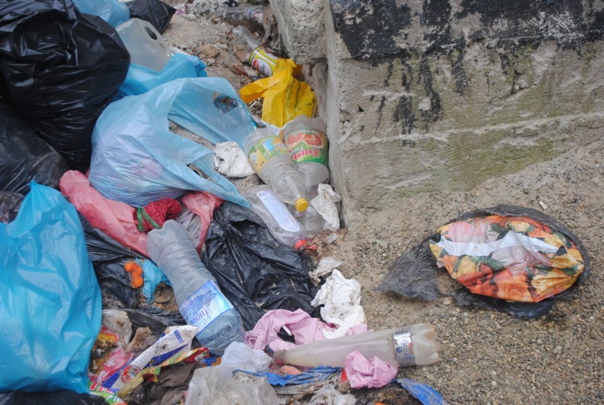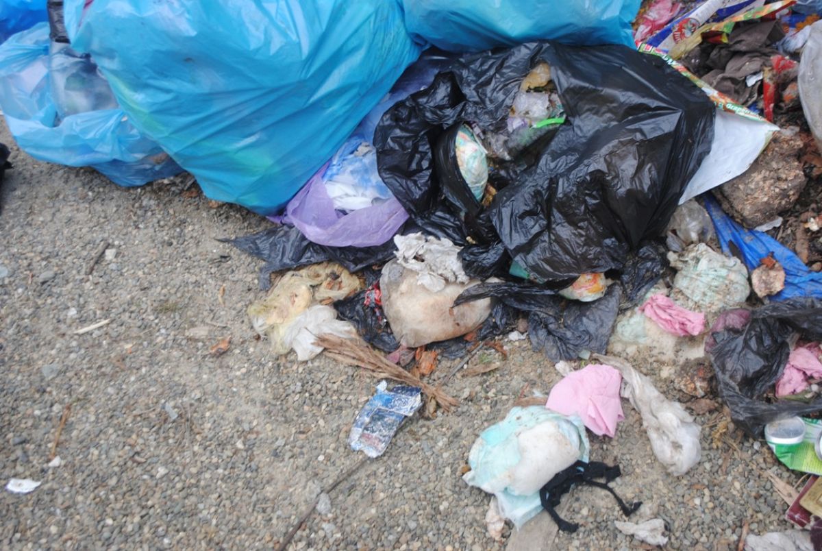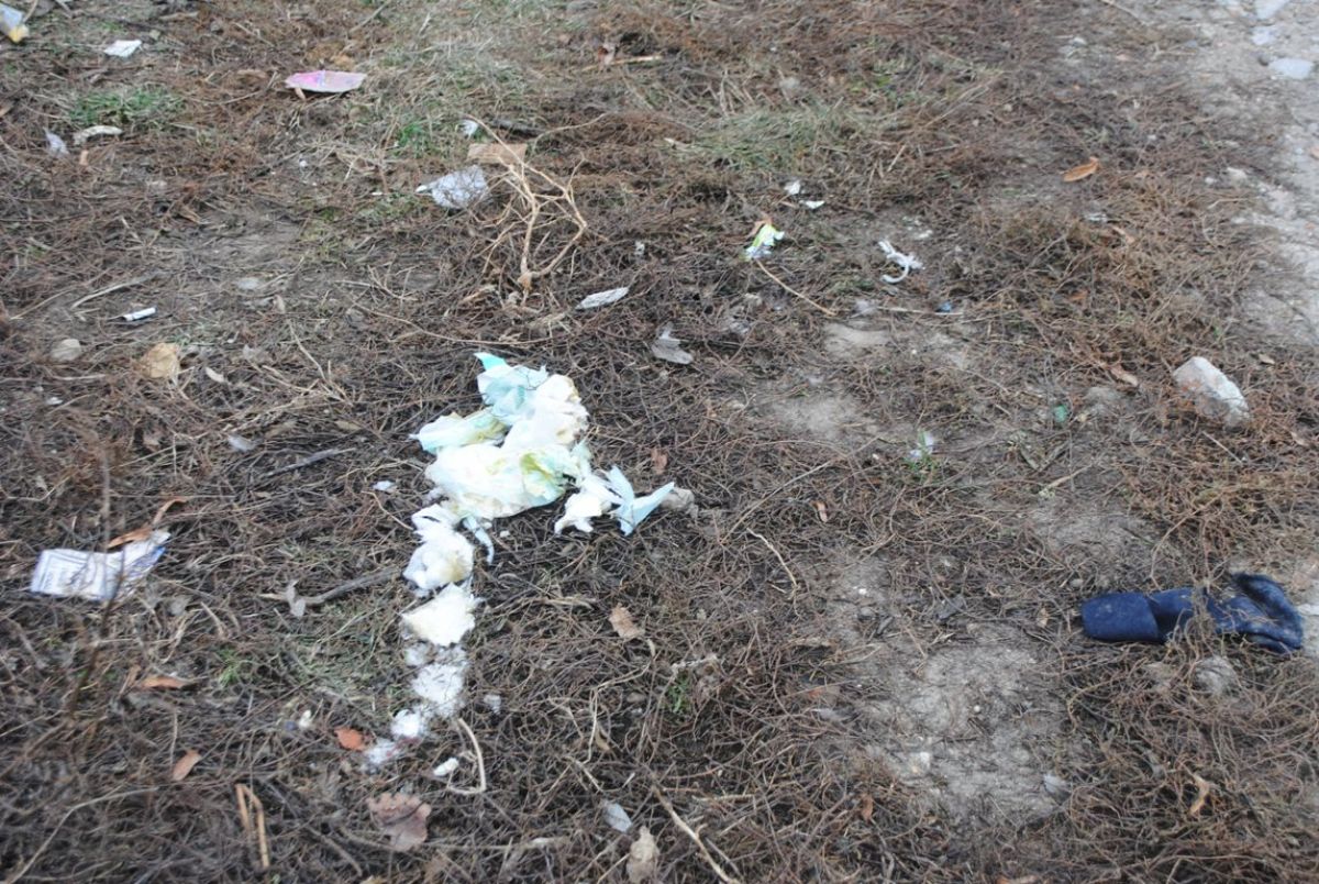 Pahare, sticle, absorbante şi găleţi sunt doar câteva lucruri care pot fi văzute prin saci de gunoaie aruncaţi la întâmplare. Nu lipsesc vata şi… fecalele.
