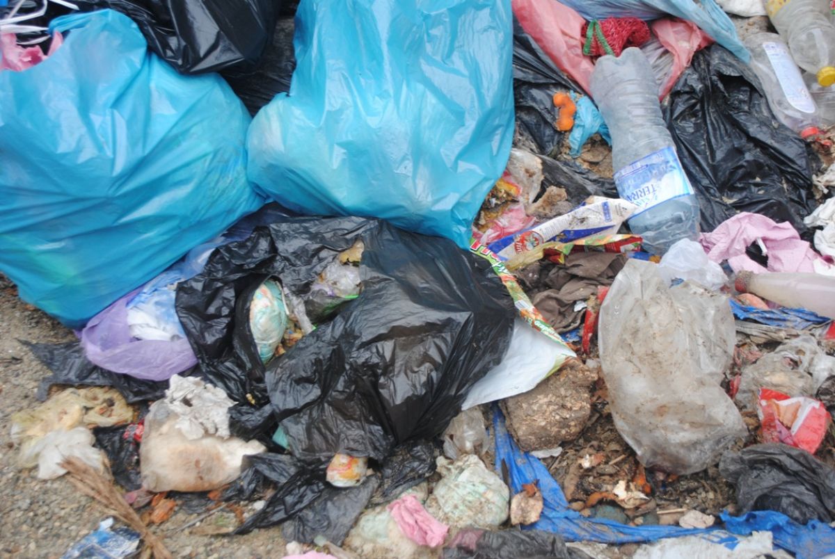 Sacii plini atât cu resturi alimentare cât și cu produse folosite de igienă personală compun o imagine care îți provoacă greață.