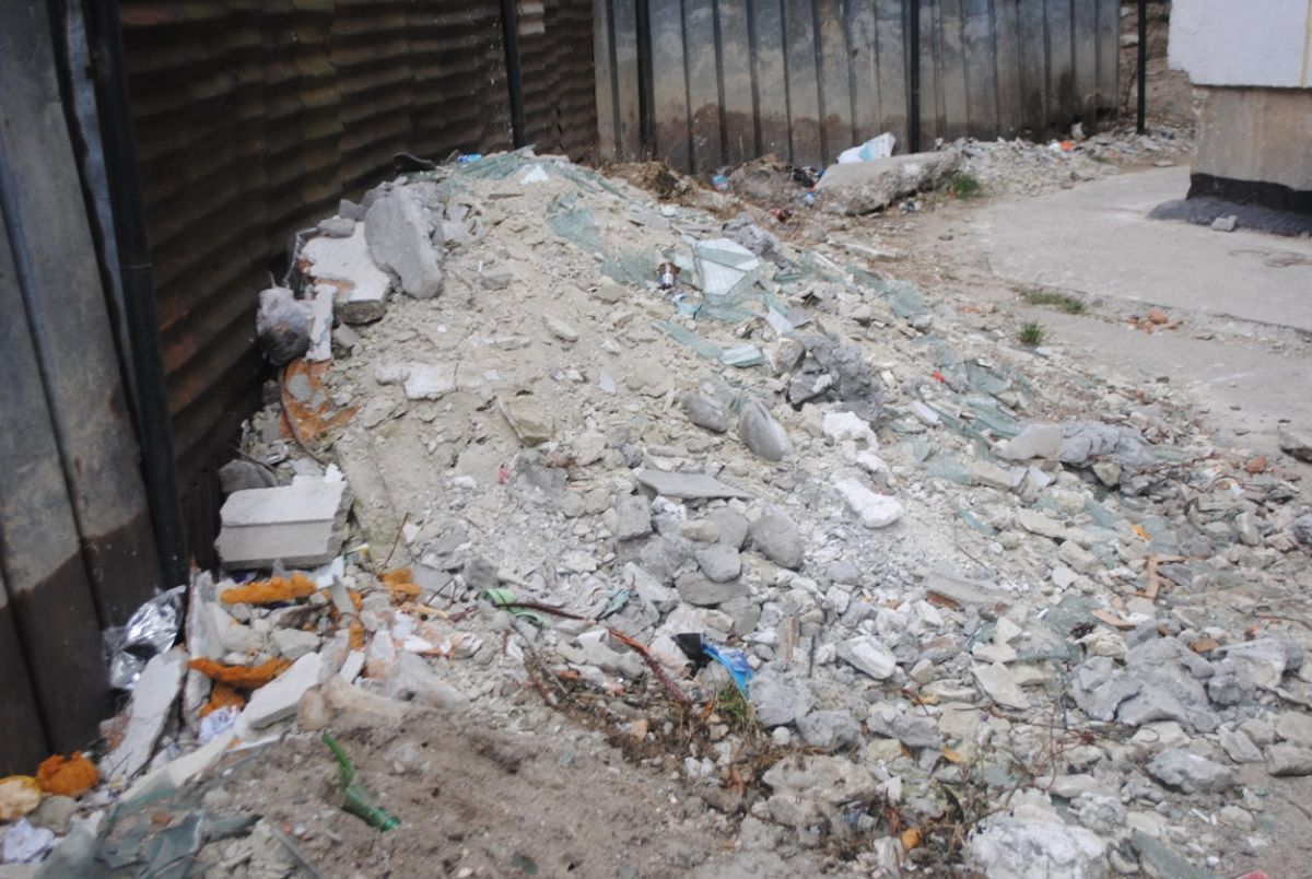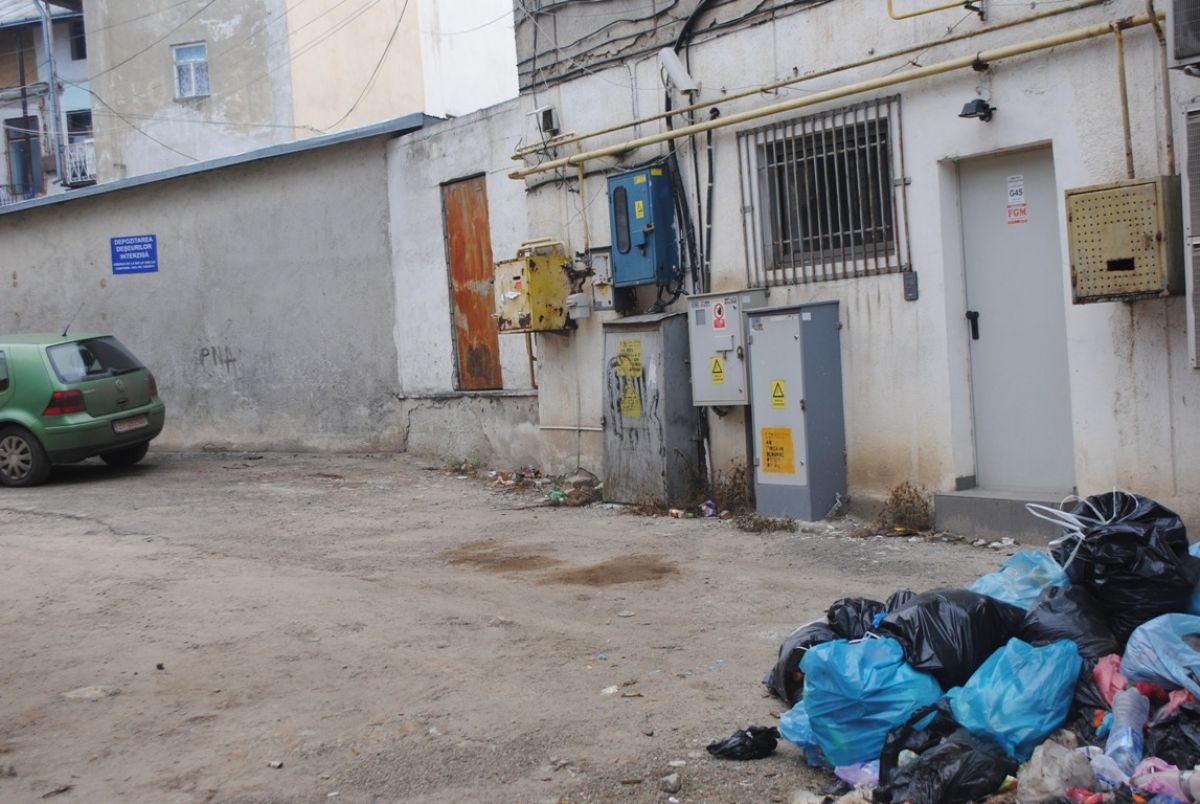 Dar nu este singurul, tot în același loc există și un morman de moloz ce provine de la o lucrare de hidroizolație, executată, potrivit unui locatar din zonă, de firma care s-ar fi ocupat de amenajarea second hand-ul de la parterul clădirii Modarom.