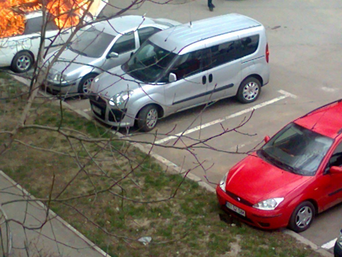 Flăcări URIAȘE la Fordul care s-a aprins ziua în amiaza mare într-o parcare – FOTOGALERIE