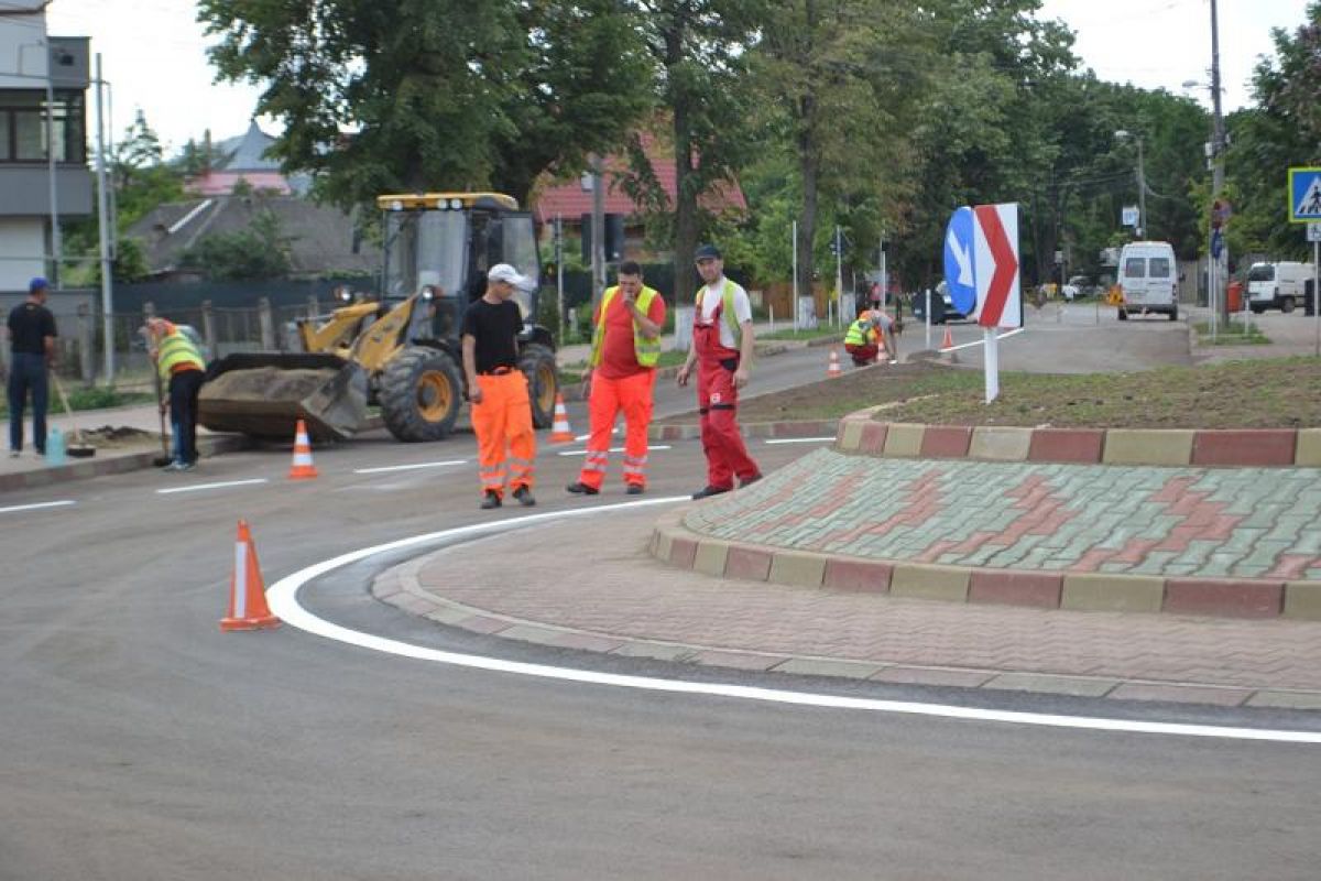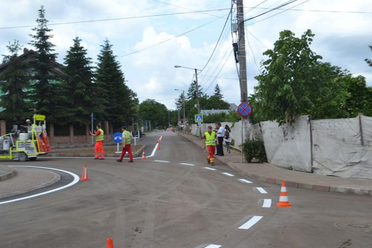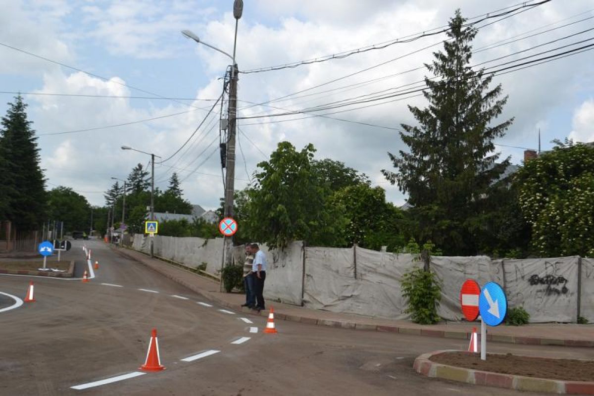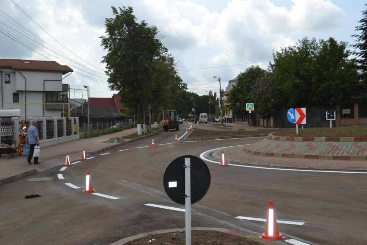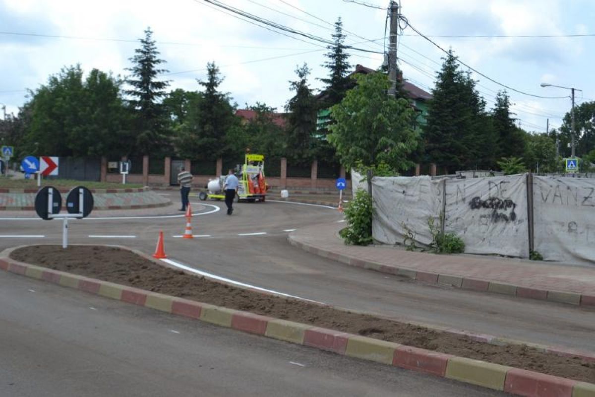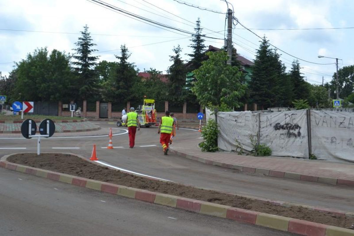 Rondul din intersecție a fost finalizat în totalitate, la fel și trotuarele aferente, în cursul zilei de astăzi lucrătorii de la Conrec ocupându-se de marcajele rutiere.