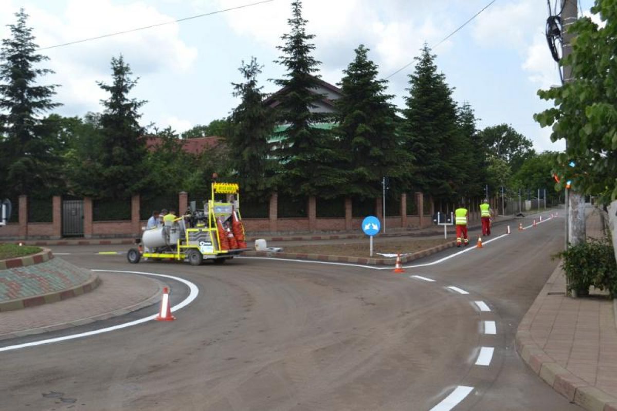 La marcaje s-a folosit material termoplastic cu micro-bile fosforescente ce are o valabilitate de 3 ani de zile. De asemenea, se vor marca și patru treceri de pietoni în culorile galben și roșu.  Sensul giratoriu din ”intersecția morții” cum și-a căpătat nefericita denumire urmează să fluidizeze traficul rutier din zonă și să reducă accidentele care au avut loc, unul fiind soldat chiar cu decesul unui ambulanțier. (G.E.)