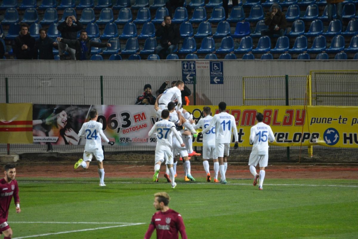 Finalul primei jumătăţi de oră a meciului a adus şi deschiderea de scor: FC Botoşani – CFR Cluj este 1 – 0 din minutul 30. Golul a fost marcat de Ngadeu, după un corner executat de Martinus.