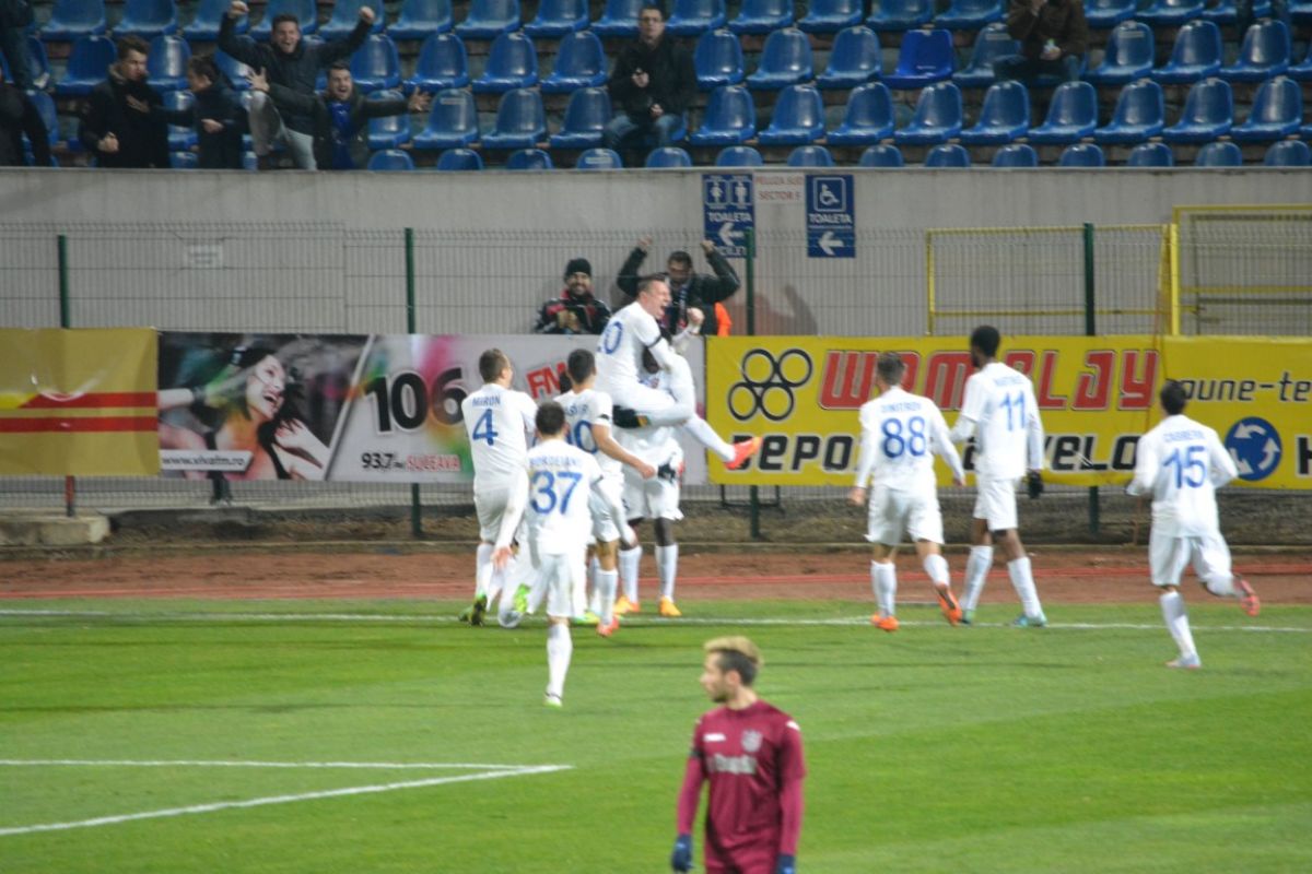 Extrema a centrat cu mult efect, fundaşul central a venit la colţul scurt şi a reluat cu capul, surprinzându-l pe Vâtcă. Noua reuşită a camerunezului a adus o explozie de bucurie pe Municipal, cei 2.500 de oameni scandând zeci de secunde „Mişu! Mişu!” în timp ce „golul” crainicului a părut a fi cel mai lung din acest sezon. (S.B.,G.E.)